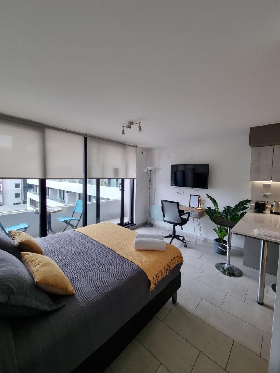 Tenía calefacción y baño impecable.?Más infoOriana Chile?Departamento con los artefactos necesarios, limpio y nuevo, pero no provee toalla para la ducha, solo para las manos, para quienes viajamos con mochila o bolso es complicado.?Más infoZamira Chile?Muy cómodo, tiene todo lo necesario, bien iluminado, limpio.?Más infoDDennisse Chile?Todo, la limpieza, la rapidez de entregarte indicaciones y resolver dudas, la comodidad del lugar y la cercanía. Por sobre todo contar con estacionamiento.?Más infoSolange Chile?El departamento era excelente, cómodo y tenía todo lo necesario; además estaba en un sector muy tranquilo, cerca de todo lo?Más infoMardones Chile?la vista hermosa, las dependencias me gustan. El departamento tiene lo justo y necesario.?Más infoNatalia Chile?Es una habitación muy cómoda, espaciosa, está todo nuevo y limpio, con detalles que lo hacen inolvidable. El lugar es silencioso, tranquilo. No me quería ir?Más infoMardones Chile?Me gusto que ese mejoraron algunas cosas de mi estancia anterior, además complementaron ciertas cosas que me parecieron muy bien. Esta vez fue una muy buena estancia.?Más infoEntradaDe las 15:00 a las 21:00Tienes que decirle al alojamiento con antelación a qué hora vas a llegar.SalidaHasta las 11:00Cancelación / prepagoLas condiciones de cancelación y de pago por adelantado pueden variar según el tipo de alojamiento. Introduce las fechas de tu estancia y consulta las condiciones de la opción que quieres reservar.Camas para niñosCondiciones para estancias con niñosNo se pueden alojar niños.Condiciones sobre cunas y camas supletoriasEn este alojamiento no hay cunas ni camas supletorias.Restricción por edadEdad mínima para el check-in: 18Tarjetas aceptadas en este alojamiento No se acepta efectivoFumadores / No fumadoresNo se puede fumar.MascotasNo se admiten.