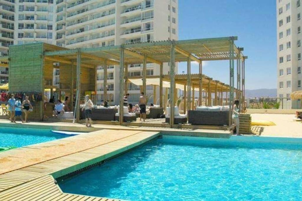 Exteriores: Situado frente a la playa. Piscina privada. Balcón. Jardín