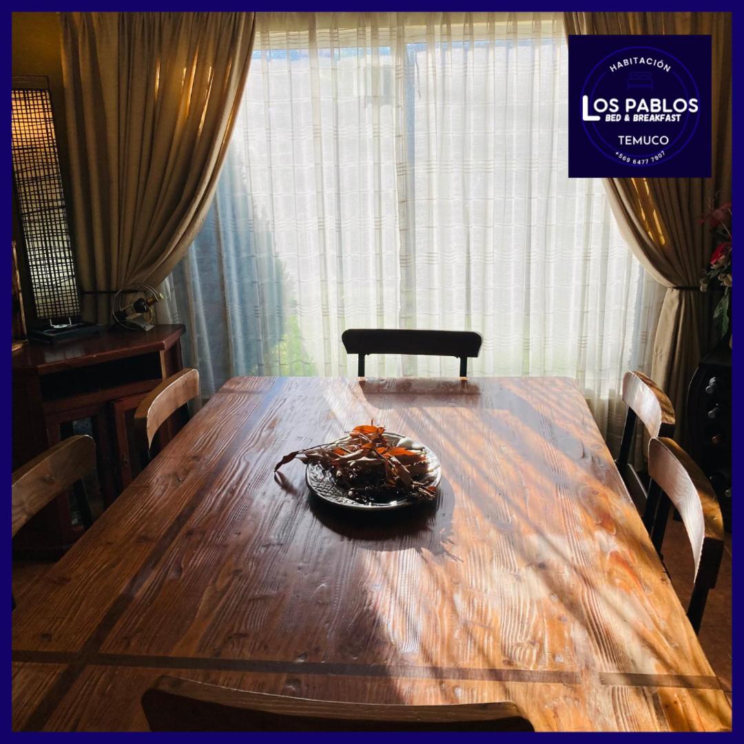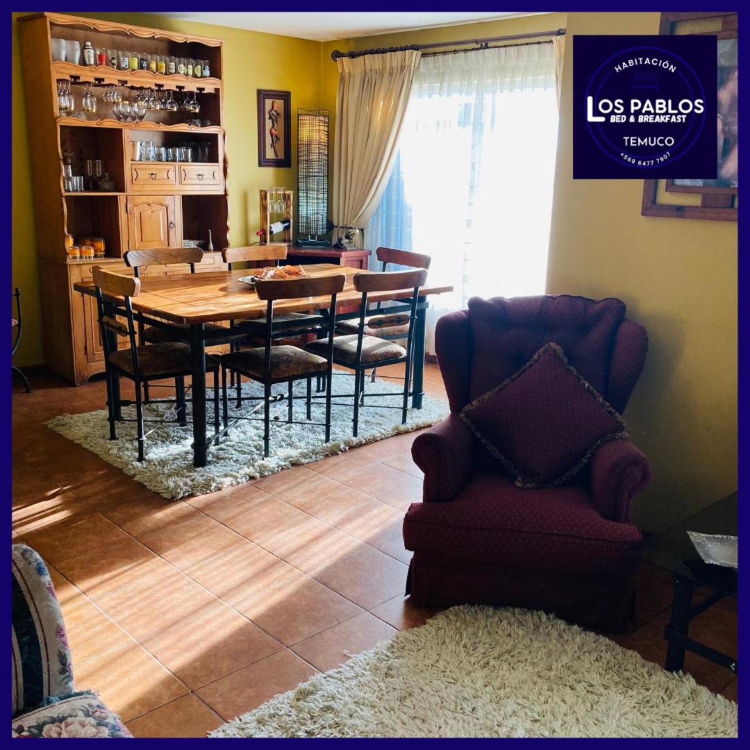 Agradable, preciso para cuando se va por trabajo.?Más infoChavarria Chile?Cercano a los lugares por visitar, excelente personal, lugar limpio y acogedor?Más infoCea Chile?La atención de Cristian buena ubicación todo excelente t?Más infoNatalia Chile?La acogida muy hogareña, muy amable, me sentí en casa. Cama muy cómoda, suave, temperada, la casa esta temperada con estufa a lecha pero igual mi pieza tenía calefactor. Al frete de Jumbo y de restaurantes de todo tipo.?Más infoFrancisco Chile?Excelente todo, desde la habitación, la limpieza, la casa y la ubicación?Más infoOsvaldo Chile?El desayuno agradable y existía preocupación del personal.?Más infoGerardo Chile?El lugar es muy acogedor y la atención muy atenta, lugar recomendado para quien necesite alojarse.?Más infoEntradaDe las 14:30 a las 22:30Tienes que decirle al alojamiento con antelación a qué hora vas a llegar.SalidaDe las 07:00 a las 12:00Cancelación / prepagoLas condiciones de cancelación y de pago por adelantado pueden variar según el tipo de alojamiento. Introduce las fechas de tu estancia y consulta las condiciones de la opción que quieres reservar.Camas para niñosCondiciones para estancias con niñosSe pueden alojar niños a partir de 4 años.Para ver la información correcta sobre precios y ocupación, añade a la búsqueda el número de niños con los que viajas y sus edades.Condiciones sobre cunas y camas supletoriasEn este alojamiento no hay cunas ni camas supletorias.Restricción por edadSolo podrán hacer el check-in los clientes con edades comprendidas entre 18 y 70MascotasNo se admiten.Métodos de pago aceptadosEfectivo Fumadores / No fumadoresNo se puede fumar.FiestasNo se pueden celebrar fiestas/eventosHorario sin ruidoLos clientes deben minimizar el ruido de 23:00 a 08:00Informa a B&B Los Pablos Temuco con antelación de tu hora prevista de llegada. Para ello, puedes utilizar el apartado de peticiones especiales al hacer la reserva o ponerte en contacto directamente con el alojamiento. Los datos de contacto aparecen en la confirmación de la reserva.En este alojamiento no se pueden celebrar despedidas de soltero o soltera ni fiestas similares.No se puede hacer ruido de 23:00:00 a 08:00:00.