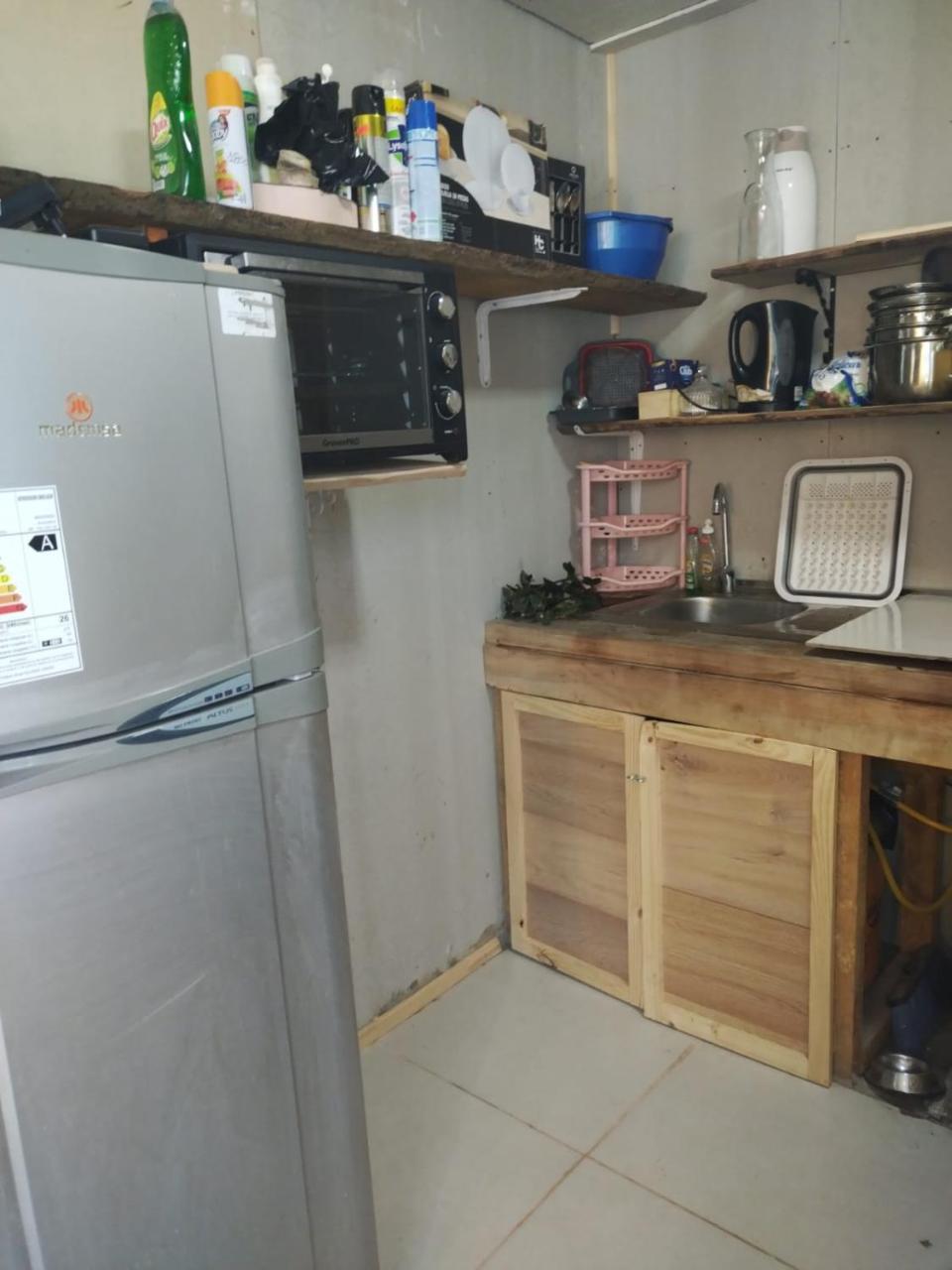 Cocina: Mesa de comedor. Horno. Utensilios de cocina. Hervidor eléctrico. Cocina. Nevera