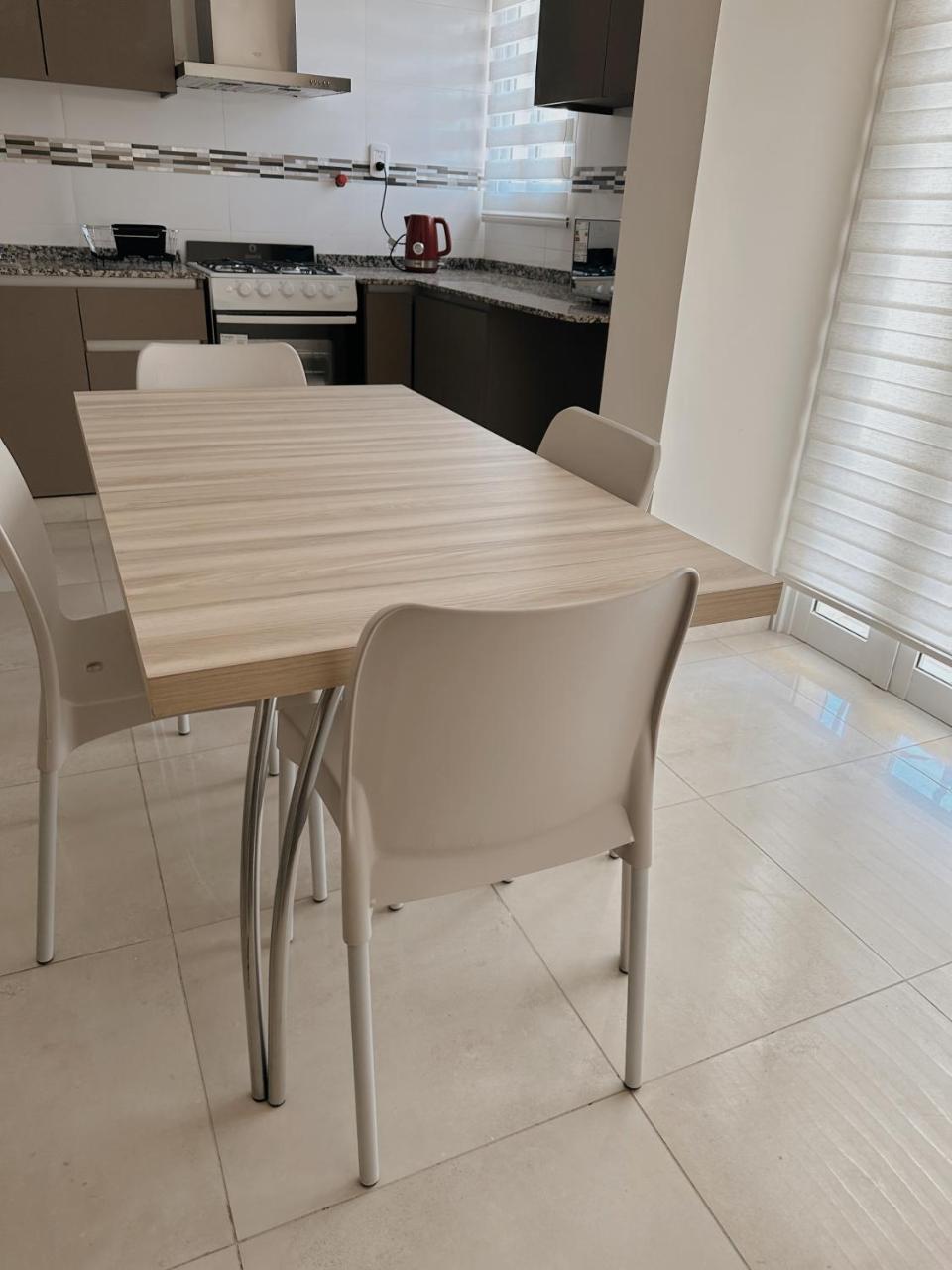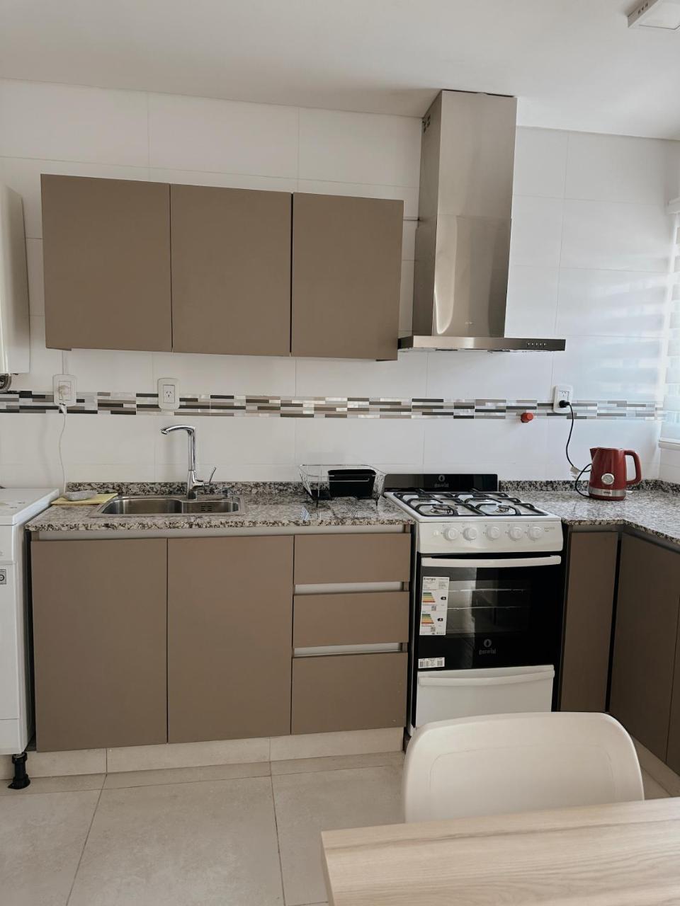 Cocina: Mesa de comedor. Cafetera. Productos de limpieza. Tostadora. Horno. Utensilios de cocina. Pava eléctrica. Cocina. Lavarropas. Microondas. Heladera. Kitchenette