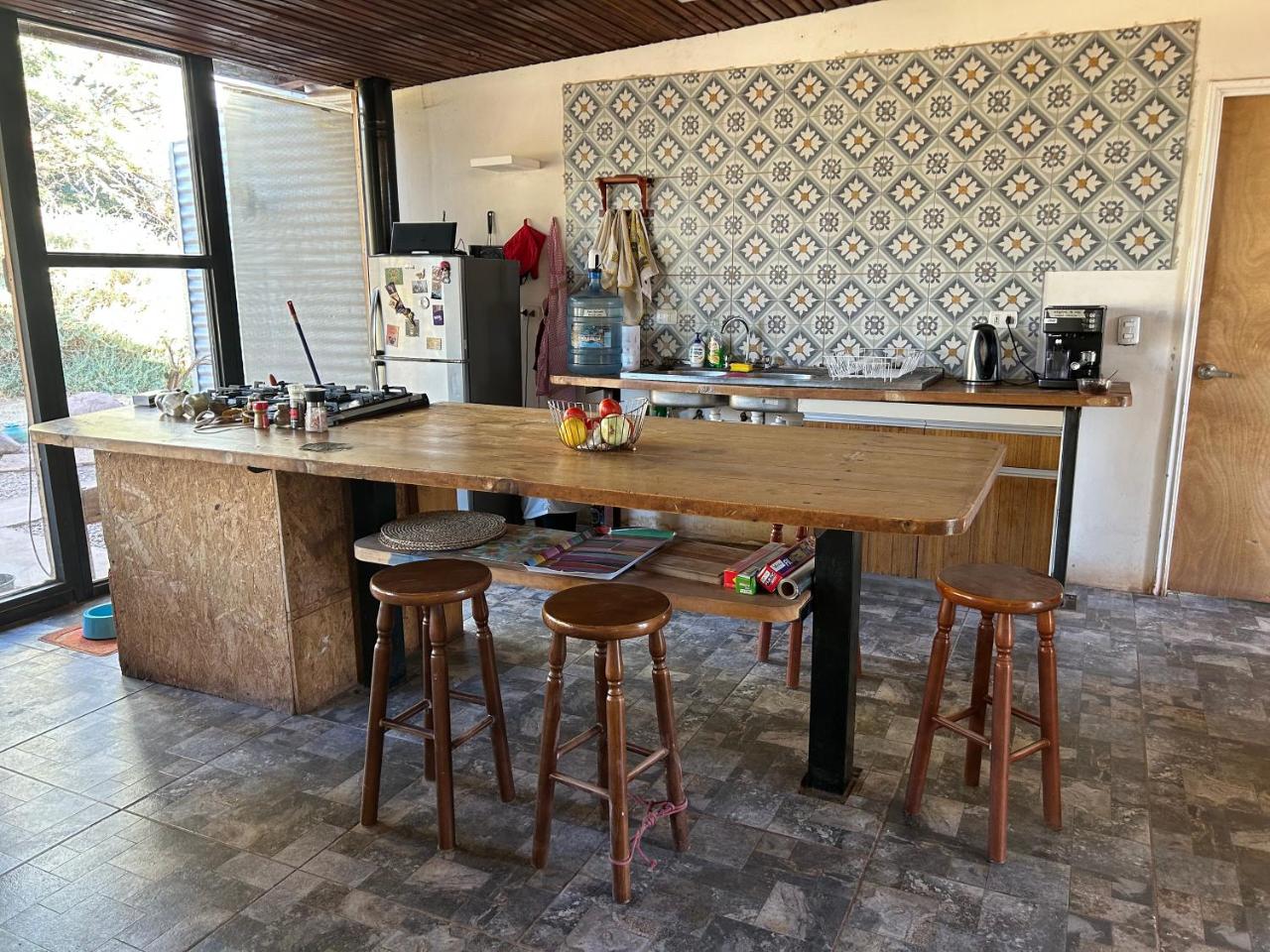 Cocina: Mesa de comedor. Utensilios de cocina. Nevera