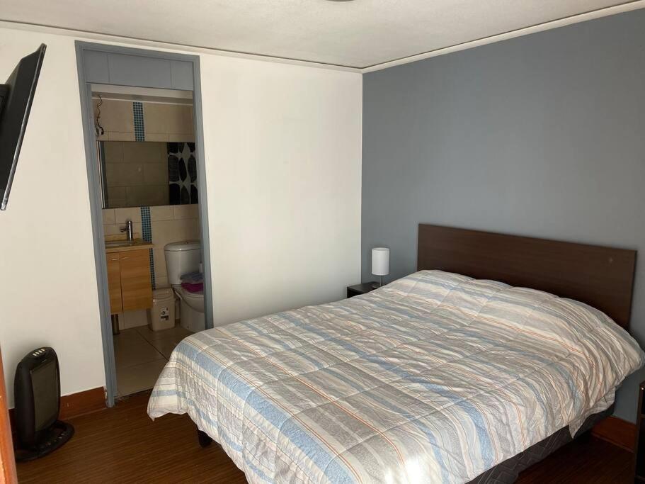 Todo muy bien en general.?Más infoJavier Chile?La atencion de la persona a cargo del departamento muy afable?Más infoKilca Chile?Excelente ubicación, muy cómodo y todoas las personas muy amables.?Más infoFrancisco Chile?El departamento en si es muy cómodo para estar en pareja.?Más infoPamela Chile?Lugar amplio, cómodo, bonita decoración y la ducha exquisita?Más infoEEnrique Chile?Me gusto todo con respecto a la estadía, muy cómodo y tranquilo mis hijas disfrutaron mucho de la vista y la estadía y sus comodidades .?Más infoCalidadBooking.com ha puntuado la calidad de este alojamiento con un 3 sobre 5, teniendo en cuenta factores como las instalaciones, el tamaño, la ubicación o los servicios prestados.EntradaDe las 16:00 a las 23:00Tienes que decirle al alojamiento con antelación a qué hora vas a llegar.SalidaDe las 00:00 a las 12:00Cancelación / prepagoLas condiciones de cancelación y de pago por adelantado pueden variar según el tipo de alojamiento. Introduce las fechas de tu estancia y consulta las condiciones de la opción que quieres reservar.Camas para niñosCondiciones para estancias con niñosSe pueden alojar niños de cualquier edad.Para ver la información correcta sobre precios y ocupación, añade a la búsqueda el número de niños con los que viajas y sus edades.Condiciones sobre cunas y camas supletoriasEn este alojamiento no hay cunas ni camas supletorias.Restricción por edadEdad mínima para el check-in: 21Métodos de pago aceptadosEfectivo Fumadores / No fumadoresNo se puede fumar.FiestasNo se pueden celebrar fiestas/eventosHorario sin ruidoLos clientes deben minimizar el ruido de 22:00 a 07:00MascotasNo se admiten.Informa a Céntrico cómodo pasos U de Chile con antelación de tu hora prevista de llegada. Para ello, puedes utilizar el apartado de peticiones especiales al hacer la reserva o ponerte en contacto directamente con el alojamiento. Los datos de contacto aparecen en la confirmación de la reserva.En este alojamiento no se pueden celebrar despedidas de soltero o soltera ni fiestas similares.No se puede hacer ruido de 22:00:00 a 07:00:00.