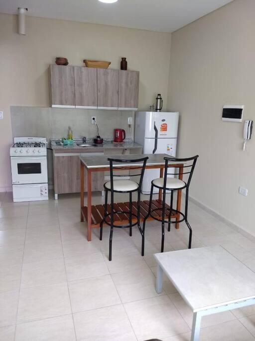 Departamento con aire acondicionado, 1 dormitorio, TV de pantalla plana y cocina con heladera.