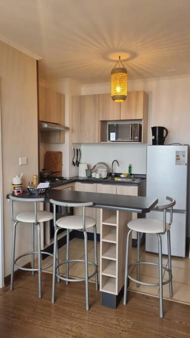 La anfitriona, muy amable?Más infoCristian Chile?Buena ubicación y departamento muy limpio y cuidado, camas confortables.?Más infoTeresa Chile?La vista, a pesar de tener que subir cinco pisos por la escalera, realmente vale la pena.?Más infoCalidadBooking.com ha puntuado la calidad de este alojamiento con un 3 sobre 5, teniendo en cuenta factores como las instalaciones, el tamaño, la ubicación o los servicios prestados.EntradaDesde las 15:00Tienes que decirle al alojamiento con antelación a qué hora vas a llegar.SalidaHasta las 12:00Cancelación / prepagoLas condiciones de cancelación y de pago por adelantado pueden variar según el tipo de alojamiento. Introduce las fechas de tu estancia y consulta las condiciones de la opción que quieres reservar.Camas para niñosCondiciones para estancias con niñosSe pueden alojar niños de cualquier edad.Para ver la información correcta sobre precios y ocupación, añade a la búsqueda el número de niños con los que viajas y sus edades.Condiciones sobre cunas y camas supletoriasEn este alojamiento no hay cunas ni camas supletorias.No hay restricción por edadNo hay edad mínima para el check-inSolo efectivoEste alojamiento solo acepta pagos en efectivo.Fumadores / No fumadoresNo se puede fumar.FiestasNo se pueden celebrar fiestas/eventosMascotas¡Gratis!Se admiten. Gratis.En este alojamiento no se pueden celebrar despedidas de soltero o soltera ni fiestas similares.