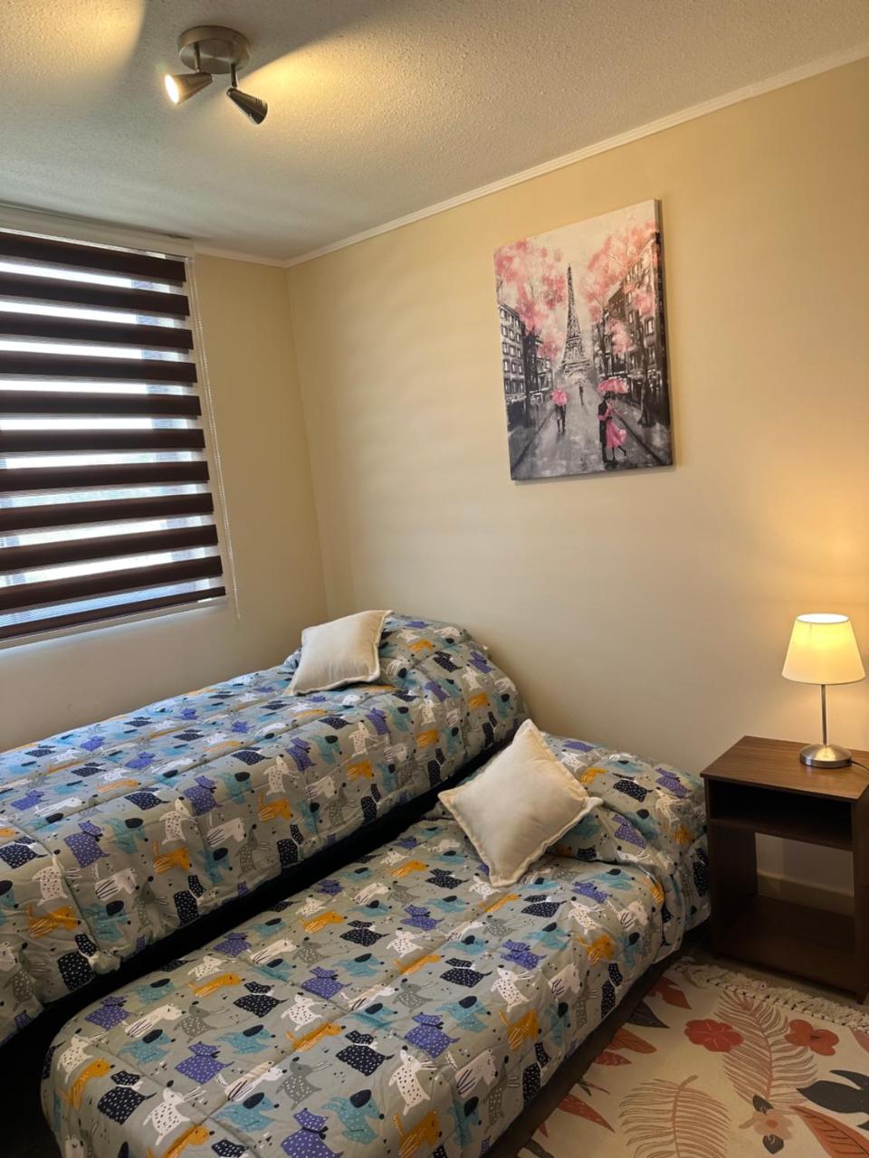 Lo mejor el aire acondicionado !!!, se agradece?Más infoMichelle Chile?Muy cómodo el departamento, cuidado y nuevo. Recomendado para familias y parejas?Más infoPérez Chile?Me gustó que tuviera plancha para la ropa, secador de pelo y secadora (aunque no los allá utilizado). La anfitriona muy amable y pendiente de sus huéspedes en todo momento.?Más infoBoris Chile?excelente departamento, ubicacion, limpieza, todo. la comunicacion con la anfitriona espectacular.?Más infoCalidadBooking.com ha puntuado la calidad de este alojamiento con un 3 sobre 5, teniendo en cuenta factores como las instalaciones, el tamaño, la ubicación o los servicios prestados.EntradaDe las 15:00 a las 18:00Tienes que decirle al alojamiento con antelación a qué hora vas a llegar.SalidaDe las 12:00 a las 13:00Cancelación / prepagoLas condiciones de cancelación y de pago por adelantado pueden variar según el tipo de alojamiento. Introduce las fechas de tu estancia y consulta las condiciones de la opción que quieres reservar.Camas para niñosCondiciones para estancias con niñosSe pueden alojar niños de cualquier edad.Para ver la información correcta sobre precios y ocupación, añade a la búsqueda el número de niños con los que viajas y sus edades.Condiciones sobre cunas y camas supletoriasEn este alojamiento no hay cunas ni camas supletorias.Restricción por edadSolo podrán hacer el check-in los clientes con edades comprendidas entre 18 y 18Solo efectivoEste alojamiento solo acepta pagos en efectivo.Fumadores / No fumadoresNo se puede fumar.FiestasNo se pueden celebrar fiestas/eventosMascotas¡Gratis!Se admiten. Gratis.En este alojamiento no se pueden celebrar despedidas de soltero o soltera ni fiestas similares.