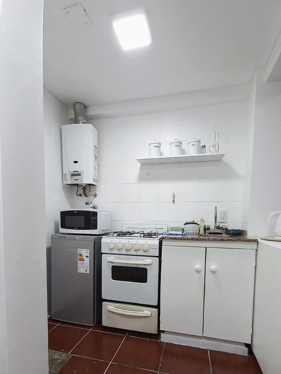 Cocina: Mesa de comedor. Productos de limpieza. Hornalla. Horno. Utensilios de cocina. Pava eléctrica. Cocina. Microondas. Heladera. Kitchenette