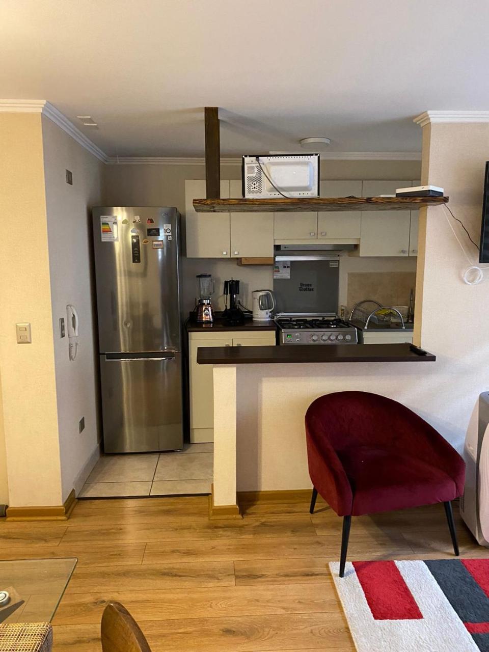 Pily Chile?Departamento muy cómodo y acogedor, es tal cual se ve en las fotografías. Además de limpio y tiene de todo lo que puedas necesitar para estar cómodo. La persona a cargo muy amable y simpática.?Más infoCerpa Chile?Departamento hermoso, limpio, cómodo, camas impecables, seguro. Nos ancantó la verdad! Y la anfitriona un 10, muy amable y atenta a todas nuestras consultas.?Más infoEntradaDe las 14:00 a las 0:00Tienes que decirle al alojamiento con antelación a qué hora vas a llegar.SalidaDe las 8:00 a las 12:00Cancelación / prepagoLas condiciones de cancelación y de pago por adelantado pueden variar según el tipo de alojamiento. Introduce las fechas de tu estancia y consulta las condiciones de la opción que quieres reservar.Camas para niñosCondiciones para estancias con niñosSe pueden alojar niños de cualquier edad.Para ver la información correcta sobre precios y ocupación, añade a la búsqueda el número de niños con los que viajas y sus edades.Condiciones sobre cunas y camas supletoriasEn este alojamiento no hay cunas ni camas supletorias.No hay restricción por edadNo hay edad mínima para el check-inSolo efectivoEste alojamiento solo acepta pagos en efectivo.Fumadores / No fumadoresNo se puede fumar.FiestasNo se pueden celebrar fiestas/eventosMascotasNo se admiten.En este alojamiento no se pueden celebrar despedidas de soltero o soltera ni fiestas similares.