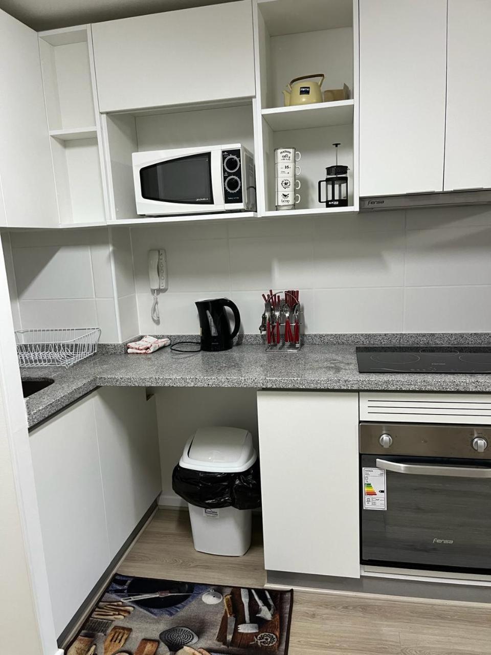 Cocina: Mesa de comedor. Utensilios de cocina. Hervidor eléctrico. Cocina. Microondas. Nevera