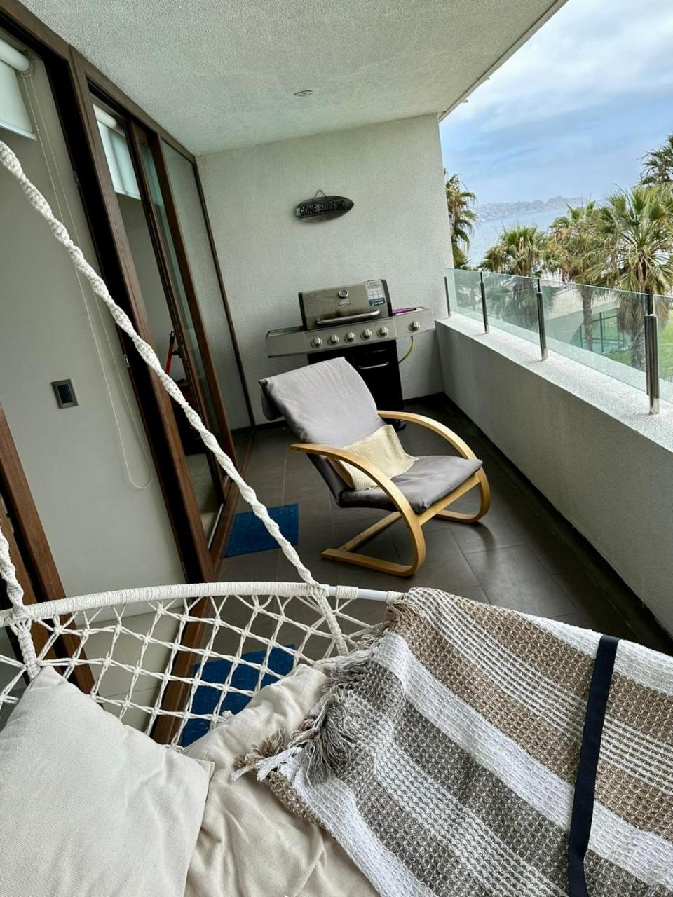 Exteriores: Situado frente a la playa. Piscina privada. Balcón. Terraza. Jardín