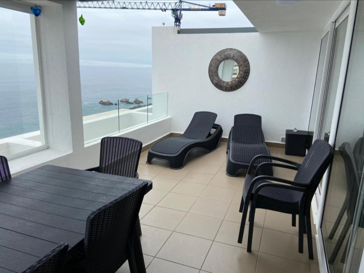 - muy buena atención de la anfitriona?Más infoGavilanes Chile?El departamento es acogedor, junto con la vista y las instalaciones, la combinación perfecta para vacacionar con tu pareja o familia.?Más infoHugo Chile?todo en general, especialmente la terraza y ubicación?Más infoKatherinne Chile?Todo, es hermoso el departamento, tiene una vista espectacular frente al mar, todo limpio y bien completo, me encanto?Más infoMorris Chile?Excelente vista, ubicación y limpieza, en resumen espectacular?Más infoSergio Chile?Excelente el lugar, la vista, las instalaciones. Se escucha el sonido del mar, ideal para desconectarse y relajarse.?Más infoRicardo Brasil?Wonderful place to rest . An amazing view of pacific ocean.?Más infoVer traducciónMartin Reino Unido?Absolutely beautiful apartment. Location and view superb. Host really helpful.?Más infoVer traducciónCalidadBooking.com ha puntuado la calidad de este alojamiento con un 3 sobre 5, teniendo en cuenta factores como las instalaciones, el tamaño, la ubicación o los servicios prestados.EntradaDe las 15:00 a las 18:00Tienes que decirle al alojamiento con antelación a qué hora vas a llegar.SalidaDe las 08:00 a las 11:00Cancelación / prepagoLas condiciones de cancelación y de pago por adelantado pueden variar según el tipo de alojamiento. Introduce las fechas de tu estancia y consulta las condiciones de la opción que quieres reservar.Camas para niñosCondiciones para estancias con niñosSe pueden alojar niños de cualquier edad.Para ver la información correcta sobre precios y ocupación, añade a la búsqueda el número de niños con los que viajas y sus edades.Condiciones sobre cunas y camas supletoriasEn este alojamiento no hay cunas ni camas supletorias.No hay restricción por edadNo hay edad mínima para el check-inSolo efectivoEste alojamiento solo acepta pagos en efectivo.Fumadores / No fumadoresNo se puede fumar.FiestasNo se pueden celebrar fiestas/eventosMascotasNo se admiten.En este alojamiento no se pueden celebrar despedidas de soltero o soltera ni fiestas similares.