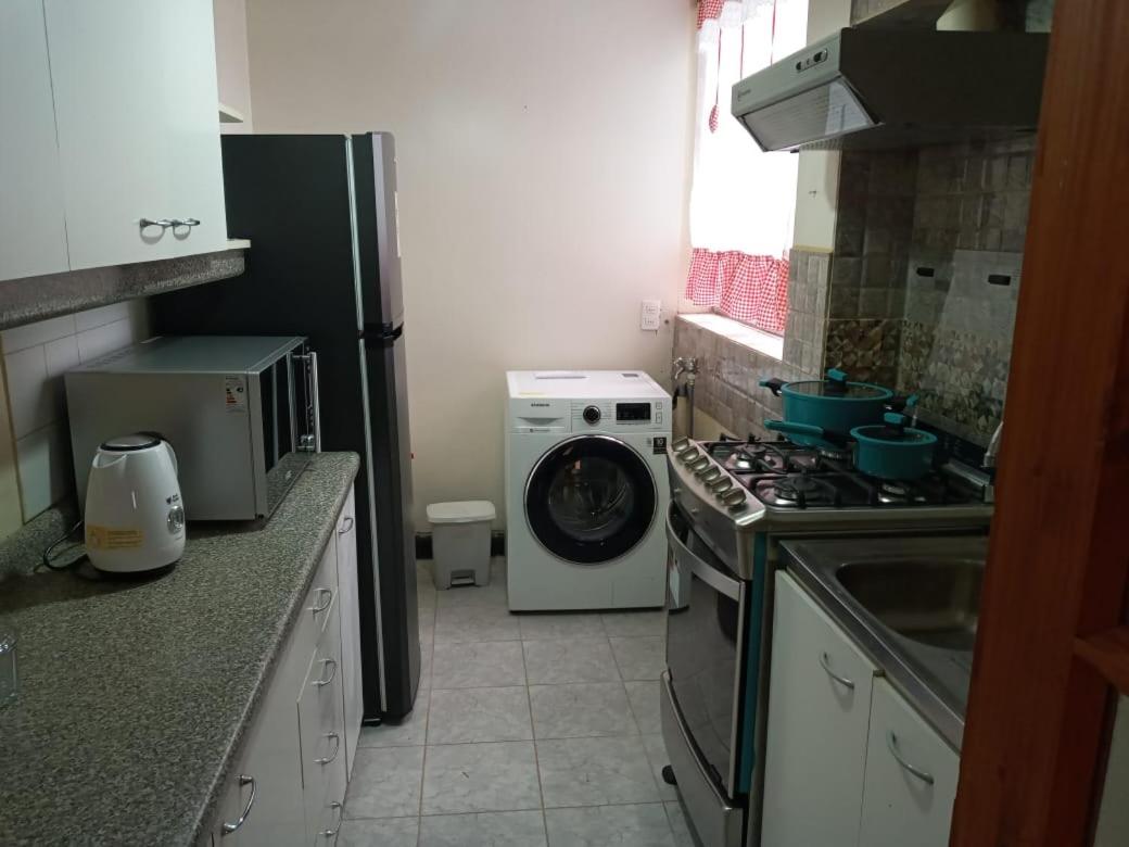 Cocina: Mesa de comedor. Productos de limpieza. Horno. Secadora de ropa. Utensilios de cocina. Hervidor eléctrico. Cocina. Lavadora. Microondas. Nevera