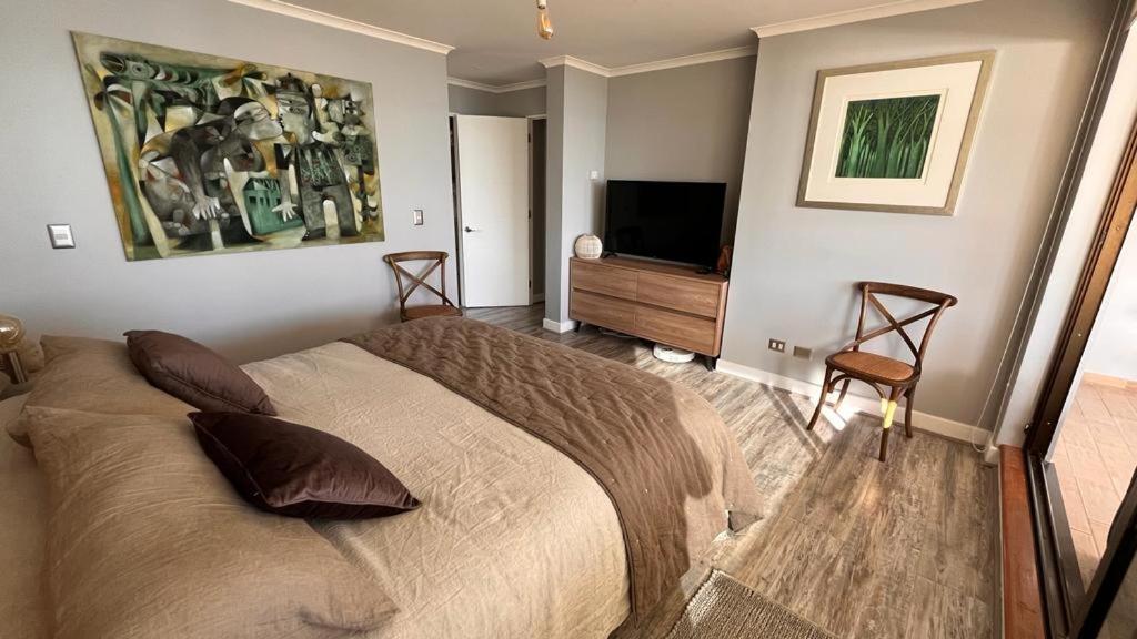 Inicia sesión y ahorraPodrías ahorrar un 10% o más en este alojamiento al iniciar sesiónInicia sesiónHazte una cuentaPrácticas del alojamientoEste alojamiento nos ha dicho que ha implementado algunas prácticas en todas o algunas de las siguientes categorías: residuos, agua, energía y gases de efecto invernadero, destino y comunidad, y naturaleza.Más infoKming Chile?El departamento es espacioso, en una excelente ubicación, no sólo es cómodo sino acogedor e inspirador. Especial para el descanso. En el invierno se siente calentito por su orientación. Una vista espectacular y Matteo muy preocupado de sus huéspedes.?Más infoValeria Chile?La ubicación, lo amplio y comodo que fue estar en el Dpto.