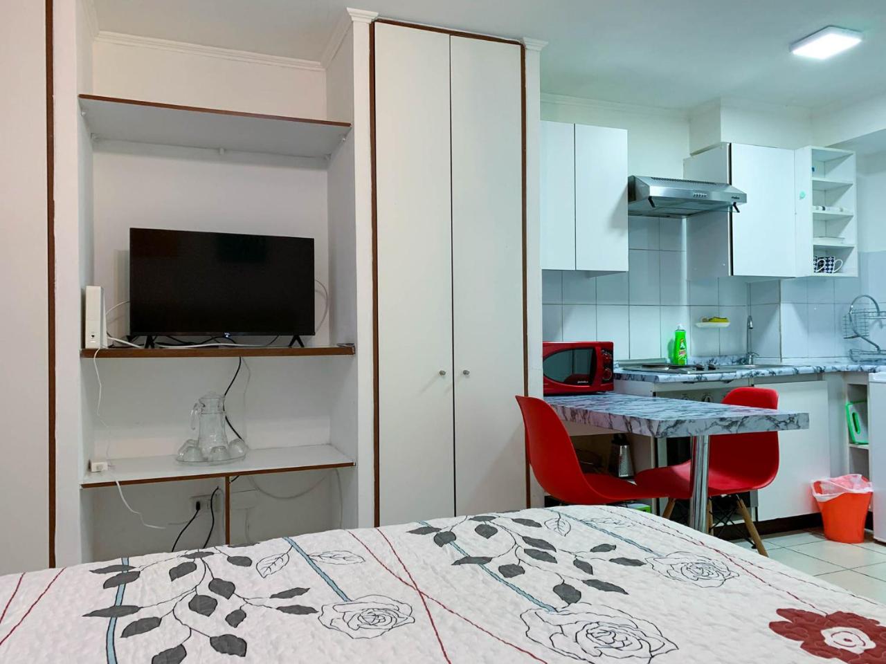 Implementos necesario para la estadia?Más infoGissela Chile?El departamento muy cómodo, y cuenta con todo lo necesario para una buena estadía.?Más infoConstanza Chile?Nos encantó la ubicación, súper cómodo y la anfitriona muy amable. Muy recomendable?Más infoCalidadBooking.com ha puntuado la calidad de este alojamiento con un 3 sobre 5, teniendo en cuenta factores como las instalaciones, el tamaño, la ubicación o los servicios prestados.EntradaDe las 15:00 a las 23:00Tienes que decirle al alojamiento con antelación a qué hora vas a llegar.SalidaDe las 11:00 a las 12:00Cancelación / prepagoLas condiciones de cancelación y de pago por adelantado pueden variar según el tipo de alojamiento. Introduce las fechas de tu estancia y consulta las condiciones de la opción que quieres reservar.Camas para niñosCondiciones para estancias con niñosSe pueden alojar niños de cualquier edad.Para ver la información correcta sobre precios y ocupación, añade a la búsqueda el número de niños con los que viajas y sus edades.Condiciones sobre cunas y camas supletoriasEn este alojamiento no hay cunas ni camas supletorias.No hay restricción por edadNo hay edad mínima para el check-inMétodos de pago aceptadosEfectivo Fumadores / No fumadoresNo se puede fumar.FiestasNo se pueden celebrar fiestas/eventosMascotas¡Gratis!Se admiten. Gratis.En este alojamiento no se pueden celebrar despedidas de soltero o soltera ni fiestas similares.