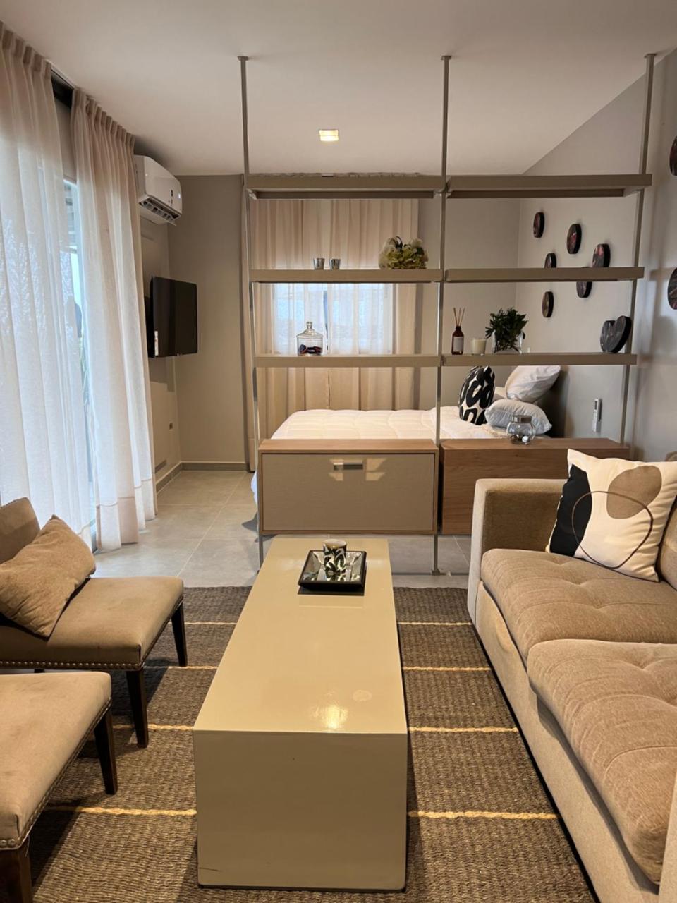 Departamento con aire acondicionado, 1 dormitorio, TV de pantalla plana y cocina.