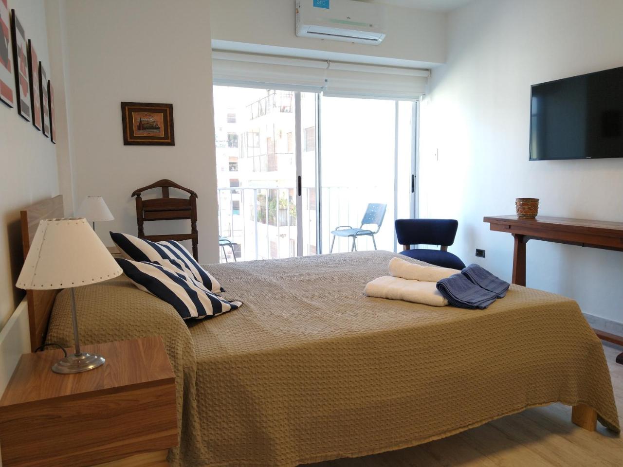 El departamento cuenta con aire acondicionado, 1 dormitorio independiente, cocina totalmente equipada con microondas y heladera, y 1 baño. El alojamiento proporciona toallas y ropa de cama por un adicional.