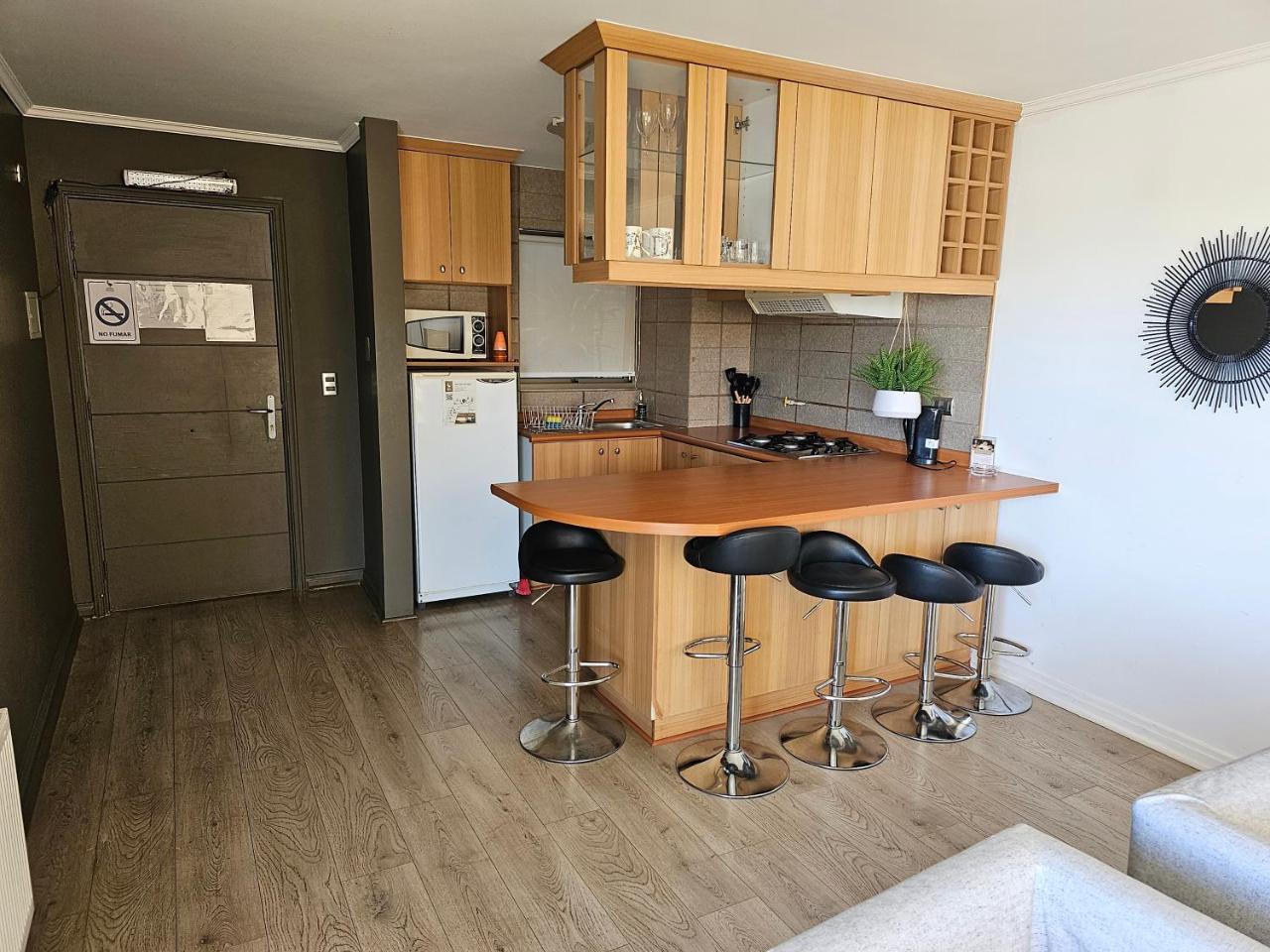 Nicolas Chile?Bonita vista , dpto igual a cómo se muestra en foto.?Más infoRonald Chile?El Depto es amplio y siempre no hay problema en salir un poco más tarde de las 12.?Más infoCalidadBooking.com ha puntuado la calidad de este alojamiento con un 3 sobre 5, teniendo en cuenta factores como las instalaciones, el tamaño, la ubicación o los servicios prestados.EntradaDe las 15:00 a las 17:30Tienes que decirle al alojamiento con antelación a qué hora vas a llegar.SalidaHasta las 12:00Cancelación / prepagoLas condiciones de cancelación y de pago por adelantado pueden variar según el tipo de alojamiento. Introduce las fechas de tu estancia y consulta las condiciones de la opción que quieres reservar.Camas para niñosCondiciones para estancias con niñosSe pueden alojar niños de cualquier edad.Para ver la información correcta sobre precios y ocupación, añade a la búsqueda el número de niños con los que viajas y sus edades.Condiciones sobre cunas y camas supletoriasEn este alojamiento no hay cunas ni camas supletorias.Restricción por edadEdad mínima para el check-in: 20Tarjetas aceptadas en este alojamiento No se acepta efectivoFumadores / No fumadoresNo se puede fumar.FiestasNo se pueden celebrar fiestas/eventosMascotas¡Gratis!Se admiten. Gratis.Guests are required to provide their RUT or DNI number to the property after reservation.En este alojamiento no se pueden celebrar despedidas de soltero o soltera ni fiestas similares.
