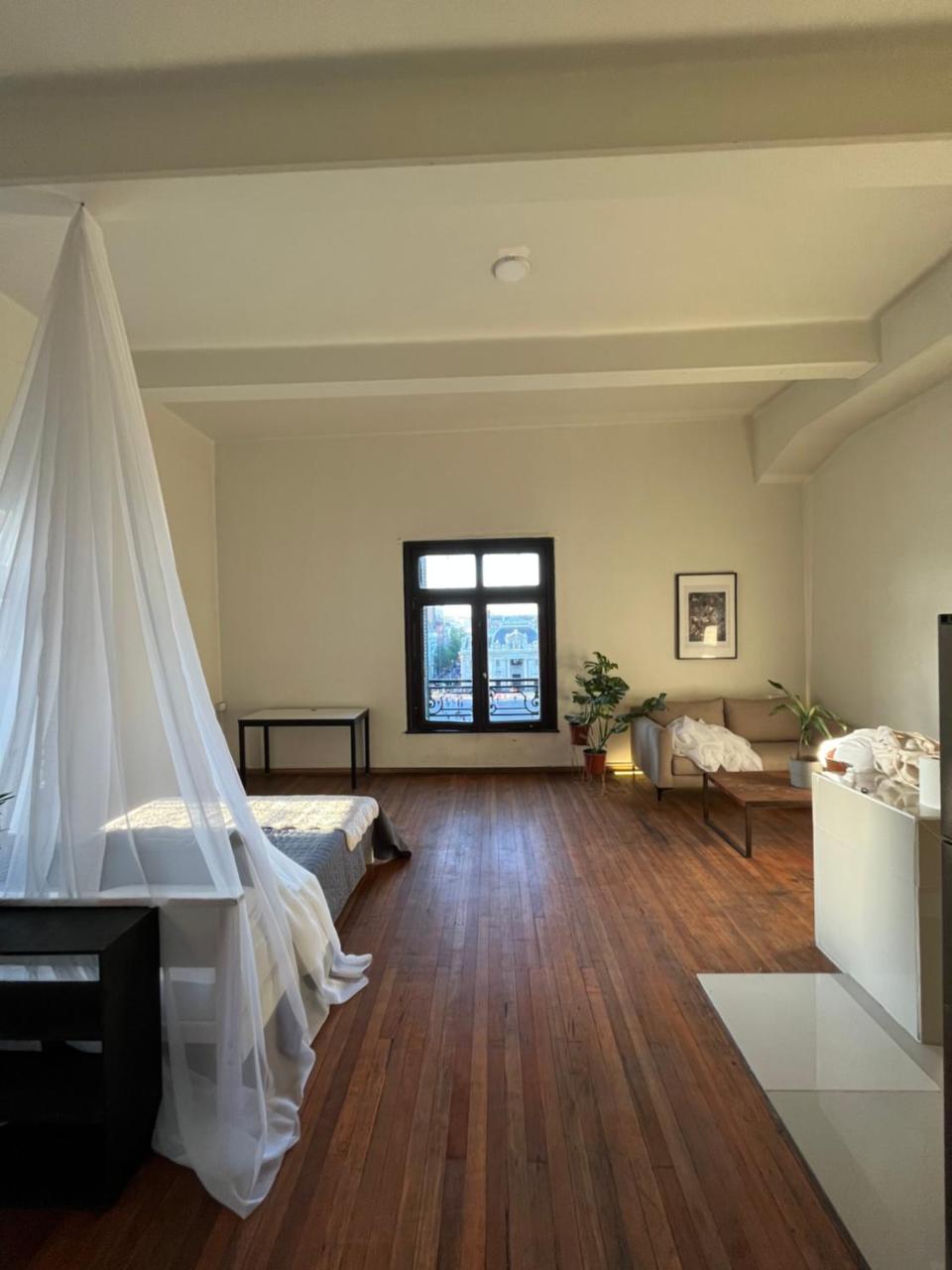 Instalaciones de la habitación: Enchufe cerca de la cama. Perchero. Suelo de madera o parquet