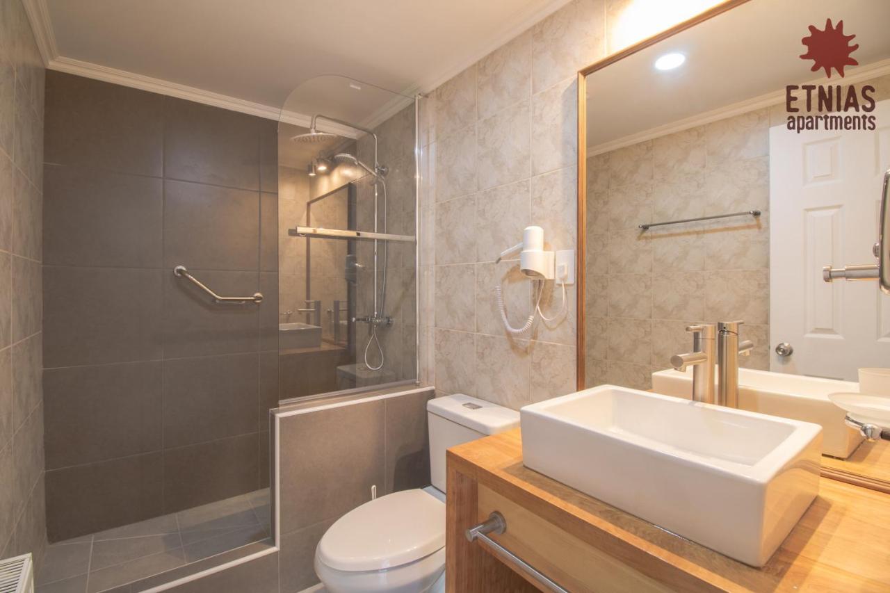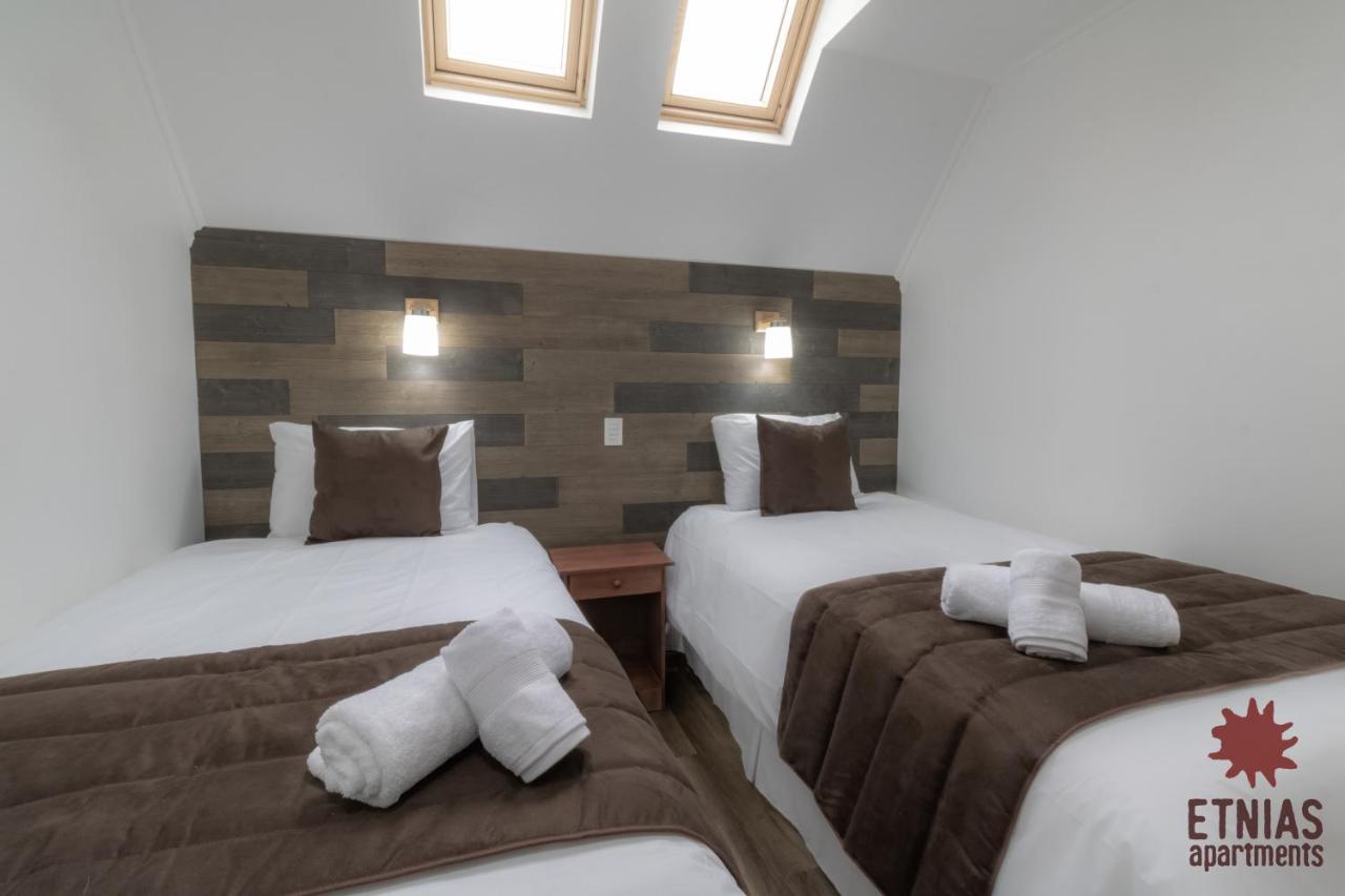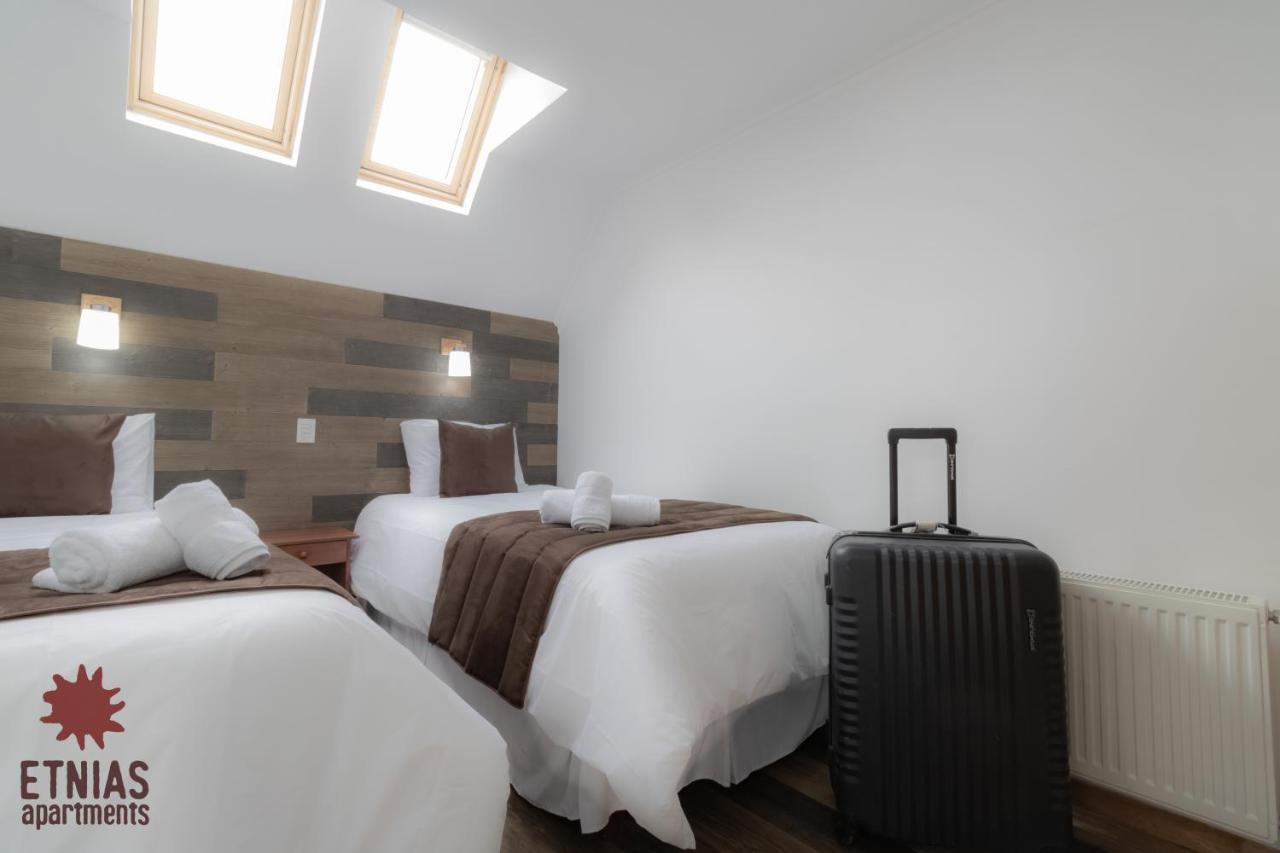 Tiene baños en ambos pisos lo que es un plus para mas comodidad.?Más infoDaniela Chile?La ubicacion es mu buena, cerca del centro y en un lugar muy tranquilo?Más infoCarolina Chile?Apartamento muy cómodo y limpio. Buena ubicación, cercano al centro de la ciudad. La comunicación con la encargada fue muy fluida y el sistema de ingreso y salida del apartamento fue muy expedito?Más infoIvanbo Chile?La comodidad de las camas, la ubicación, que tenga dos baños en ambas plantas es un plus. Estacionamiento cómodo. Entrada autónoma.?Más infoEva España?Que tiene 2 baños muy importante para nosotros con habitaciones separadas y está en general bastante limpio?Más infoBoris Perú?El minidepartamento está muy bien aquipado y tiene baños en ambas plantas.?Más infoCastillo Chile?Todo la comodidad la ubicación 100%recomendable familia quedo feliz....?Más infoPaula Chile?Hermoso departamento, muy bien equipado , cómodo , de todo lo necesario para una estancia , excelente calefacción y ventilación . Cocina muy completa . A 3 minutos a pie del centro . Con estacionamiento adentro cerrado .?Más infoCalidadBooking.com ha puntuado la calidad de este alojamiento con un 3 sobre 5, teniendo en cuenta factores como las instalaciones, el tamaño, la ubicación o los servicios prestados.Práctica del alojamientoEste alojamiento nos ha dicho que ha implementado una práctica en alguna de las siguientes categorías: residuos, agua, energía y gases de efecto invernadero, destino y comunidad, y naturaleza.Más infoEntradaDe las 15:00 a las 21:00Tienes que decirle al alojamiento con antelación a qué hora vas a llegar.SalidaHasta las 10:00Cancelación / prepagoLas condiciones de cancelación y de pago por adelantado pueden variar según el tipo de alojamiento. Introduce las fechas de tu estancia y consulta las condiciones de la opción que quieres reservar.Camas para niñosCondiciones para estancias con niñosSe pueden alojar niños de cualquier edad.Los niños a partir de 4 años pagan como adultos en este alojamiento.Para ver la información correcta sobre precios y ocupación, añade a la búsqueda el número de niños con los que viajas y sus edades.Condiciones sobre cunas y camas supletoriasEn este alojamiento no hay cunas ni camas supletorias.Restricción por edadEdad mínima para el check-in: 18Métodos de pago aceptadosEfectivo Fumadores / No fumadoresNo se puede fumar.FiestasNo se pueden celebrar fiestas/eventosMascotasNo se admiten.Informa a Etnias Apartments con antelación de tu hora prevista de llegada. Para ello, puedes utilizar el apartado de peticiones especiales al hacer la reserva o ponerte en contacto directamente con el alojamiento. Los datos de contacto aparecen en la confirmación de la reserva.En este alojamiento no se pueden celebrar despedidas de soltero o soltera ni fiestas similares.
