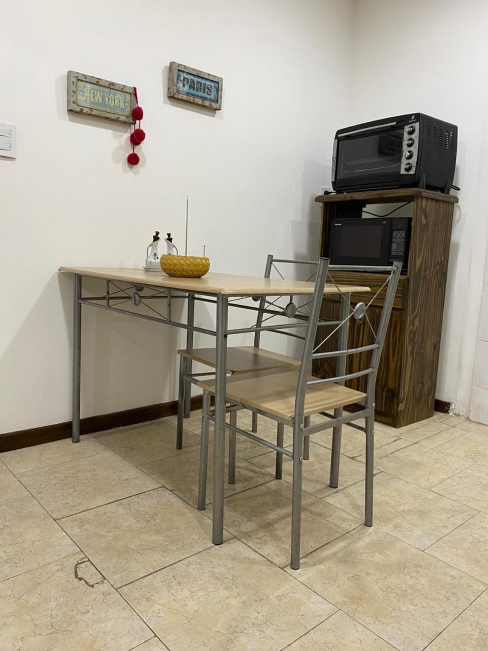 Cocina: Mesa de comedor. Productos de limpieza. Tostadora. Hornalla. Horno. Pava eléctrica. Cocina. Microondas. Heladera. Kitchenette