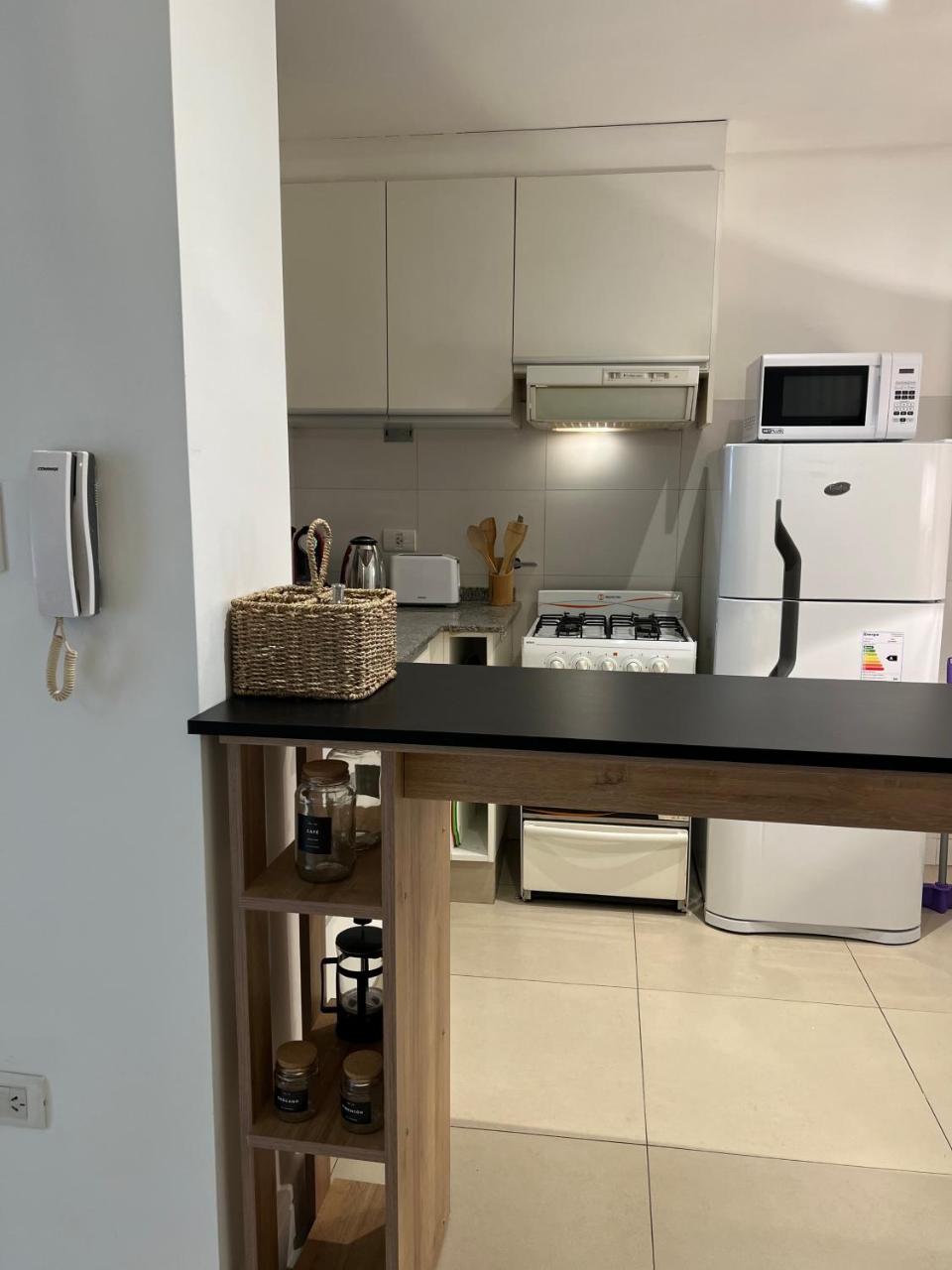 Cocina: Mesa de comedor. Cafetera. Productos de limpieza. Tostadora. Hornalla. Horno. Utensilios de cocina. Pava eléctrica. Cocina. Microondas. Heladera