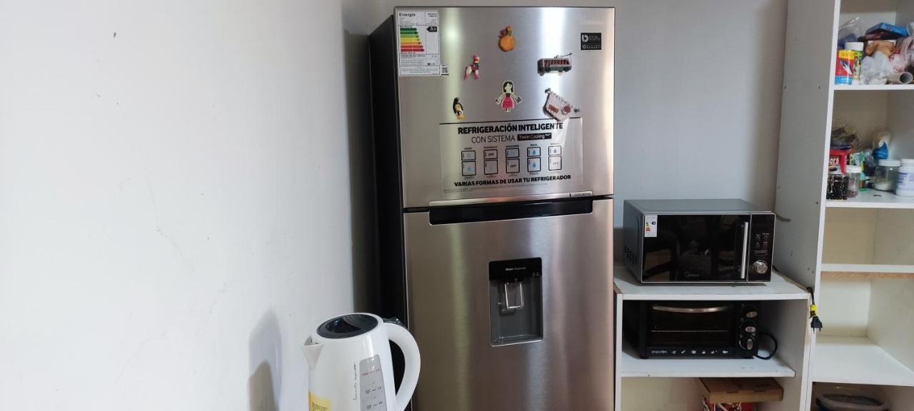 Cocina: Mesa de comedor. Utensilios de cocina. Hervidor eléctrico. Nevera