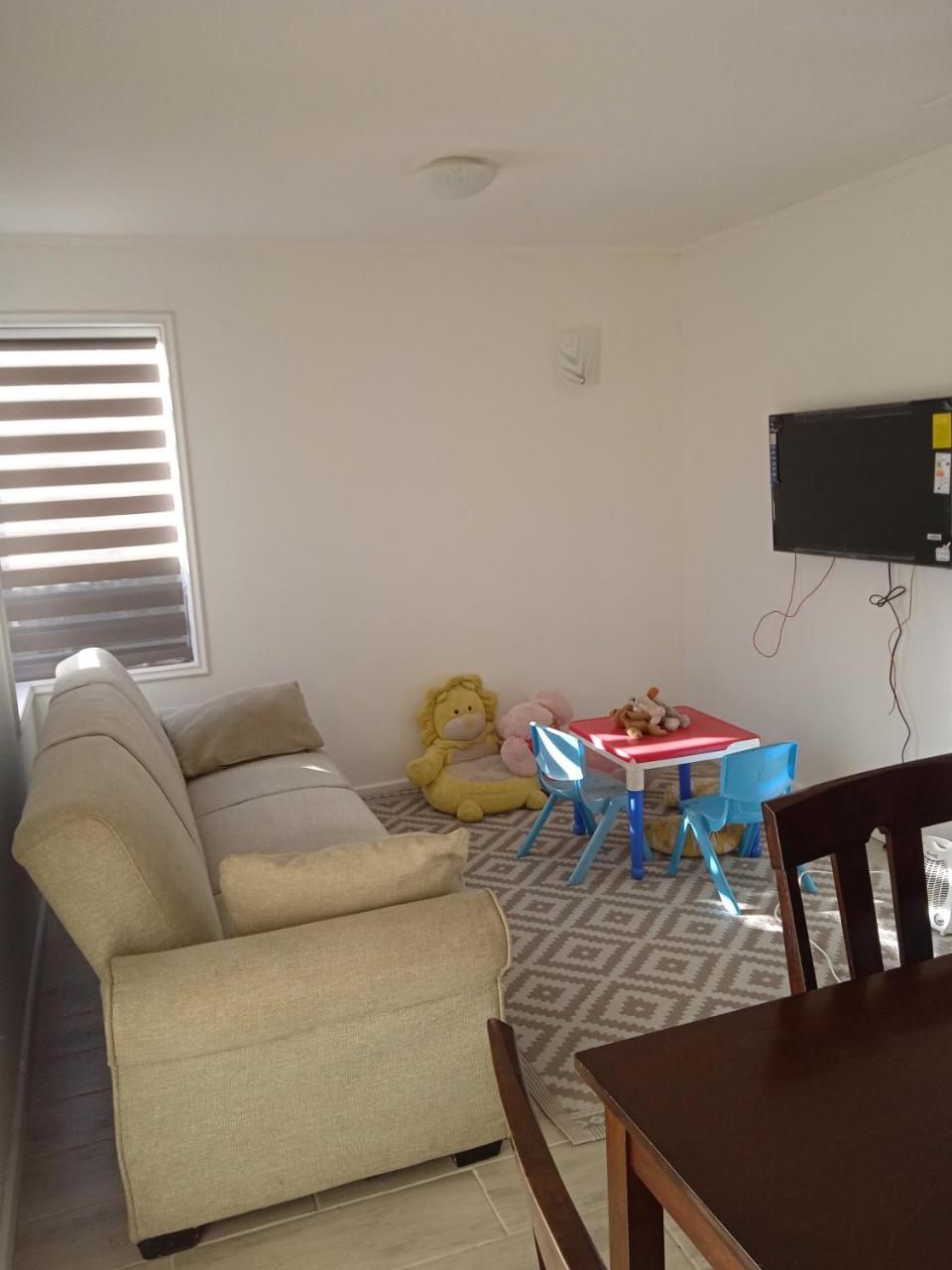 Tienen un árbol hermoso atrás?Más infoAlarcón Chile?Excelebte ubicación y todo muy limpio. Se agradece la disponibilidad de la anfitriona en todo momento?Más infoCalidadBooking.com ha puntuado la calidad de este alojamiento con un 3 sobre 5, teniendo en cuenta factores como las instalaciones, el tamaño, la ubicación o los servicios prestados.EntradaDe las 14:00 a las 23:30Tienes que decirle al alojamiento con antelación a qué hora vas a llegar.SalidaDe las 12:00 a las 13:00Cancelación / prepagoLas condiciones de cancelación y de pago por adelantado pueden variar según el tipo de alojamiento. Introduce las fechas de tu estancia y consulta las condiciones de la opción que quieres reservar.Camas para niñosCondiciones para estancias con niñosSe pueden alojar niños de cualquier edad.Los niños a partir de 16 años pagan como adultos en este alojamiento.Para ver la información correcta sobre precios y ocupación, añade a la búsqueda el número de niños con los que viajas y sus edades.Condiciones sobre cunas y camas supletorias0 - 2 añosCuna a peticiónGratisEl número de cunas permitido depende de la opción que escojas. Consulta la opción que has escogido para saber más.No hay camas supletorias disponibles en este alojamiento.Todas las cunas están sujetas a disponibilidad.No hay restricción por edadNo hay edad mínima para el check-inTarjetas aceptadas en este alojamiento No se acepta efectivoFumadores / No fumadoresNo se puede fumar.FiestasNo se pueden celebrar fiestas/eventosMascotas¡Gratis!Se admiten. Gratis.En este alojamiento no se pueden celebrar despedidas de soltero o soltera ni fiestas similares.