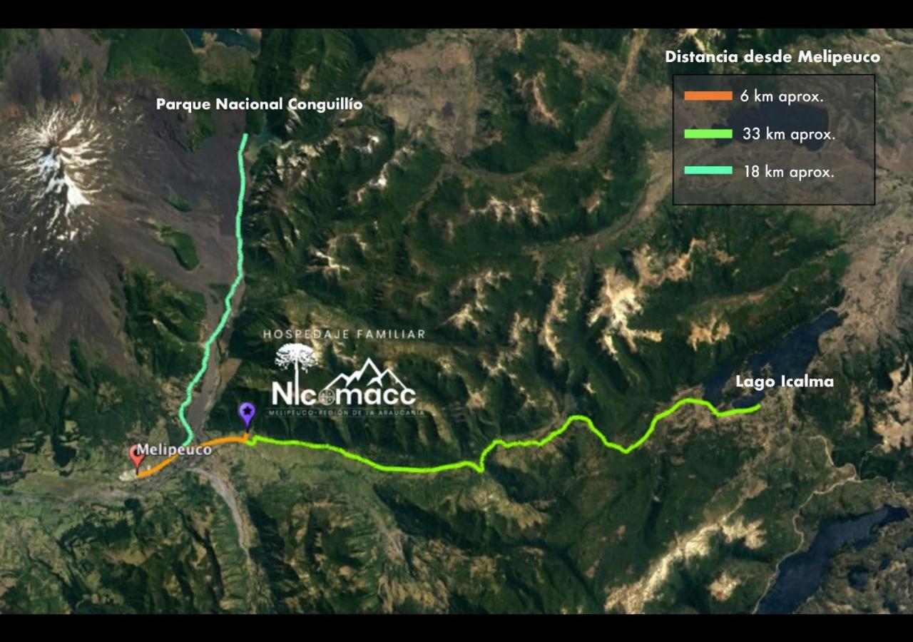 Ofrecen desayunos con productos del mismo...?Más infoTamara Chile?Los maravillosos paisajes donde se encuentra el hospedaje, los animales.. y la atención de los dueños.?Más infoFelipemc94 Chile?Lo mejor: la tranquilidad, limpieza, el desayuno incluido (muy bueno y completo) y la amabilidad y preocupación de los dueños.?Más infoNicol Chile?la cordialidad de Nicolás, desayuno rico, estacionamiento amplio?Más infoNicole Chile?Muy bonito el hospedaje, muy limpio y acogedor. Los dueños muy atentos, desayuno con pan amasado casero muy rico y muy amables. Precio/calidad excelente. Muy cerca del parque conguillio y melipeuco. Recomendado 100%?Más infoEntradaDe las 14:00 a las 22:00Tienes que decirle al alojamiento con antelación a qué hora vas a llegar.SalidaDe las 07:00 a las 11:00Cancelación / prepagoLas condiciones de cancelación y de pago por adelantado pueden variar según el tipo de alojamiento. Introduce las fechas de tu estancia y consulta las condiciones de la opción que quieres reservar.Camas para niñosCondiciones para estancias con niñosSe pueden alojar niños de cualquier edad.Los niños a partir de 6 años pagan como adultos en este alojamiento.Para ver la información correcta sobre precios y ocupación, añade a la búsqueda el número de niños con los que viajas y sus edades.Condiciones sobre cunas y camas supletoriasEn este alojamiento no hay cunas ni camas supletorias.No hay restricción por edadNo hay edad mínima para el check-inMascotasNo se admiten.Solo efectivoEste alojamiento solo acepta pagos en efectivo.Fumadores / No fumadoresNo se puede fumar.FiestasNo se pueden celebrar fiestas/eventosHorario sin ruidoLos clientes deben minimizar el ruido de 22:00 a 07:00Informa a Hospedaje Familiar Nicomacc con antelación de tu hora prevista de llegada. Para ello, puedes utilizar el apartado de peticiones especiales al hacer la reserva o ponerte en contacto directamente con el alojamiento. Los datos de contacto aparecen en la confirmación de la reserva.Es necesario realizar el pago antes de la llegada a través de transferencia bancaria. El alojamiento se pondrá en contacto contigo después de reservar para darte las instrucciones.En este alojamiento no se pueden celebrar despedidas de soltero o soltera ni fiestas similares.No se puede hacer ruido de 22:00:00 a 07:00:00.