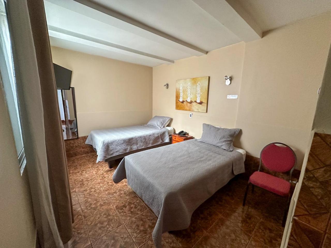 Toallas, jabones champú y papel a diario.?Más infoGarrido Chile?Muy buena ubicación, personal muy atento,rico desayuno, sábanas limpias, muy buena voluntad nos dieron agüita caliente para mate?Más infoClogarcia Argentina?La ubicación es céntrica. Hotel para pasar una noche. Con desayuno.?Más infoPedro Perú?La atención del personal fue muy buena, amabilidad y orientación para recorrer la ciudad?Más infoBarra Chile?Nos entregaron un buen servicio, llegamos antes del horario y nos permitieron dejar los bolsos en custodia, usar los baños. Al momento de recibir la habitacion se encontraba limpia y ordenada. El desayuno al día siguiente muy bueno y contundente....?Más infoClaudia Chile?La ubicación es excelente, cercana a los lugares turísticos de la ciudad y con buena locomoción?Más infoJuan Chile?Lugar céntrico, personal agradable, amables siempre a disposición de la persona, desayuno variable, rico.?Más infoVelasquez Chile?la, ubicacion,estan lo mas central de lo que queriamos con mi señora, ojo no es mi pareja nosotros somos bien casado?Más infoVioleta Bolivia?La cordialidad en el trato, el desayuno y la flexibilidad de ampliar la permanencia?Más infoPrácticas del alojamientoEste alojamiento nos ha dicho que ha implementado algunas prácticas en todas o algunas de las siguientes categorías: residuos, agua, energía y gases de efecto invernadero, destino y comunidad, y naturaleza.Más infoEntradaDesde las 15:00SalidaHasta las 12:00Cancelación / prepagoLas condiciones de cancelación y de pago por adelantado pueden variar según el tipo de alojamiento. Introduce las fechas de tu estancia y consulta las condiciones de la opción que quieres reservar.Camas para niñosCondiciones para estancias con niñosSe pueden alojar niños de cualquier edad.Los niños a partir de 6 años pagan como adultos en este alojamiento.Para ver la información correcta sobre precios y ocupación, añade a la búsqueda el número de niños con los que viajas y sus edades.Condiciones sobre cunas y camas supletoriasEn este alojamiento no hay cunas ni camas supletorias.No hay restricción por edadNo hay edad mínima para el check-inMascotasNo se admiten.Métodos de pago aceptadosEfectivo NORMATIVA FISCAL DEL PAÍSDe acuerdo con las leyes fiscales locales, todos los ciudadanos chilenos y los extranjeros residentes en el país deben abonar un suplemento del 19% en concepto de IVA.Para quedar exentos del pago de este suplemento del 19% de IVA, los huéspedes deberán abonar el pago en USD y presentar una fotocopia del pasaporte y de la tarjeta de inmigración. Los huéspedes que paguen en moneda local también deberán abonar este suplemento. En caso de no presentarse en el establecimiento, la factura se emitirá en moneda local e incluirá el suplemento en concepto de IVA.El suplemento en concepto de IVA no está incluido en el precio y se debe abonar por separado.