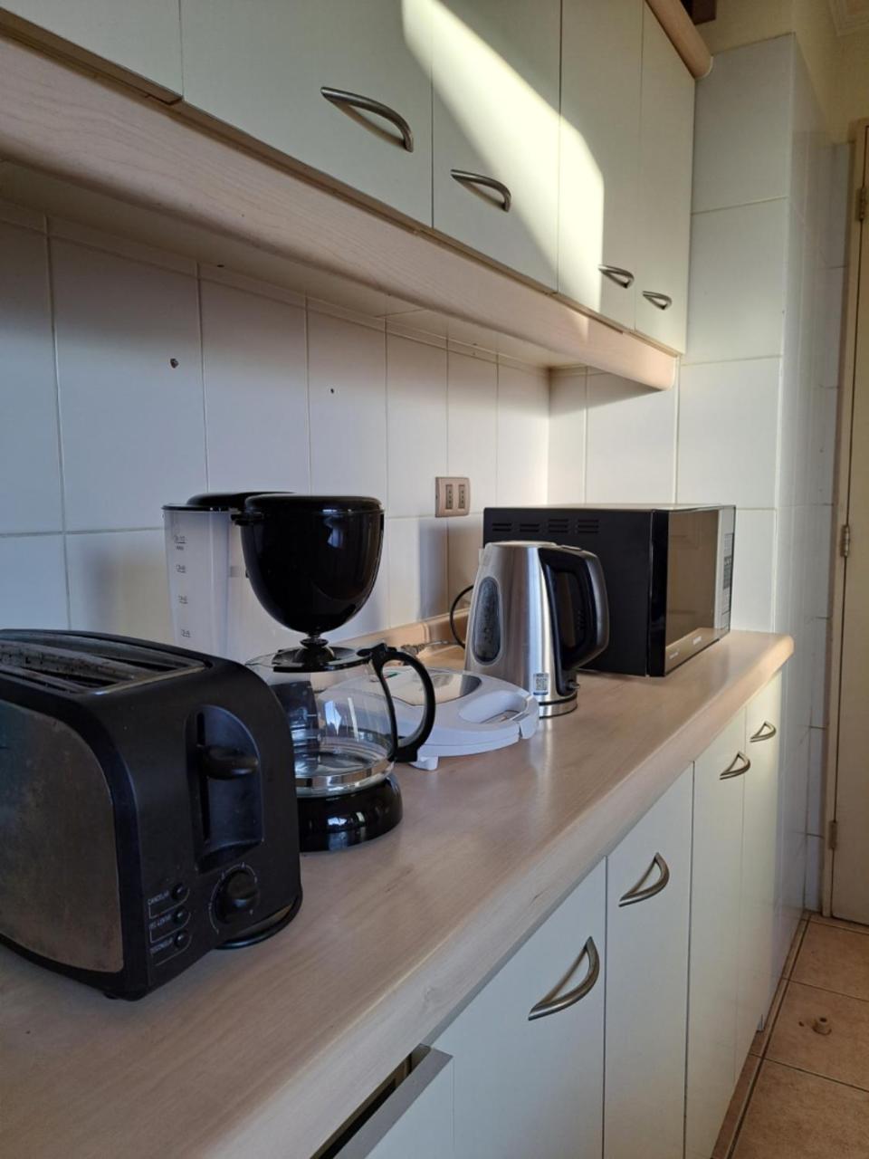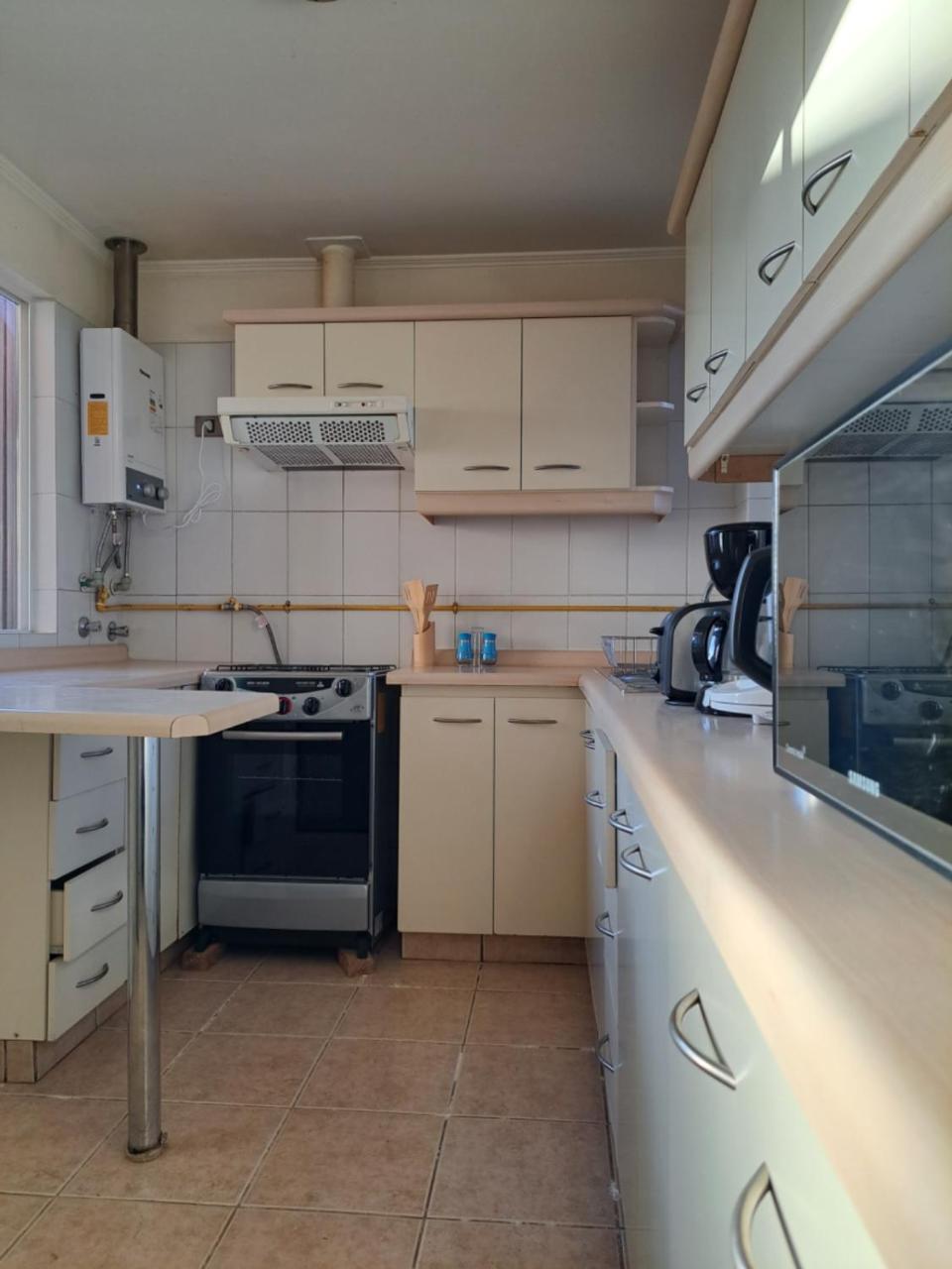 Cocina: Mesa de comedor. Utensilios de cocina. Hervidor eléctrico. Nevera