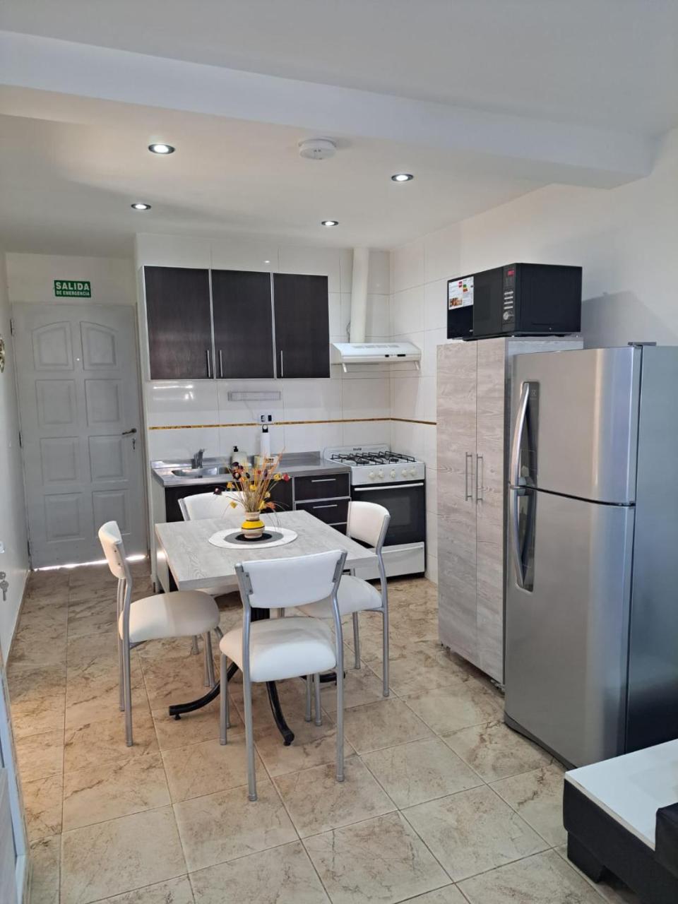 Cocina: Mesa de comedor. Productos de limpieza. Tostadora. Hornalla. Horno. Utensilios de cocina. Pava eléctrica. Cocina. Microondas. Heladera