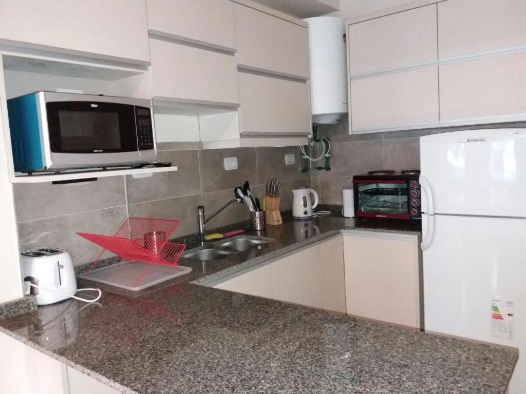 Cocina: Mesa de comedor. Horno. Utensilios de cocina. Pava eléctrica. Cocina. Microondas. Heladera. Kitchenette