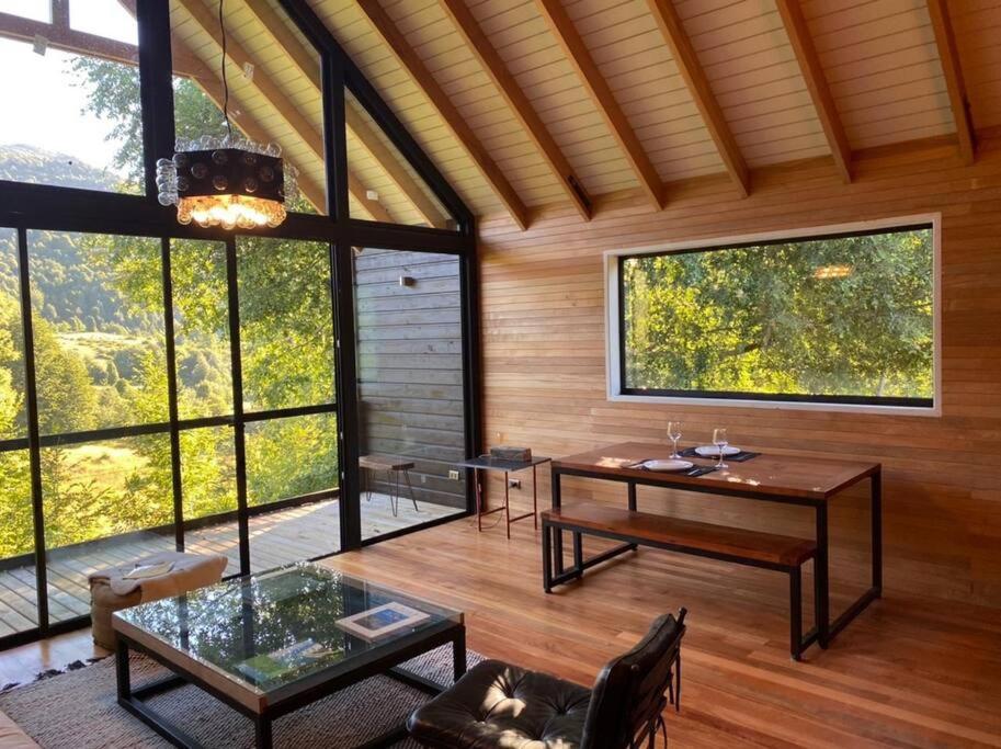 Prácticas del alojamientoEste alojamiento nos ha dicho que ha implementado algunas prácticas en todas o algunas de las siguientes categorías: residuos, agua, energía y gases de efecto invernadero, destino y comunidad, y naturaleza.Más infoMarcela Chile?El loft es maravilloso, cuenta con unas vistas muy lindas, con mi marido descansamos, cocinamos, cuenta con todos los implementación incluso una parrilla a gas, una tina para un spa un 7. Libros y juegos. Esta cerca termas Huife en indomita.?Más infoDenis_chile Chile?El loft es más hermoso de lo que se aprecia en las fotos tiene una vista increible y la calidad de la cabaña tanto en diseño como en calidad de materiales es de lo más alto .tiene un alto nivel de aislamiento y una estufa qué logra temperar en...?Más infoDaniel Chile?Increíble el lugar, emplazamiento y atención. Todo maravilloso. El lugar perfecto para desconectarse y disfrutar. Aunque no cuenta con Tv (era la idea), la señal de wifi y datos anda muy muy bien?Más infoDaniela Chile?Extraordinario lugar! Cómodo, limpio, muy bien estructurado y equipado. Me encantó el diseño interior, en armonía con el entorno, especial para desconectarse y relajarse. Volvería de todas formas!?Más infoIgnacio Chile?Primero que todo, la cabaña cumple las expectativas. Realmente un lujo alojarse debido a que cuenta con todos los servicios básicos, está muy bien equipada con todo lo necesario para habitarla durante pocos o varios días. Muy cómoda. Además, a...?Más infoFelipe Chile?La cordialidad... la tranquilidad y la calidad en las instalaciones?Más infoLily España?el lugar es super lindo, super equipado, la decoracion fantástica?Más infoMaria Chile?Es un lugar muy lindo y cómodo, en si la cabaña es hermosa, acogedora y con una vista increible. Además, la atención por parte del anfitrión es muy buena, siempre esta disponible por cualquier duda, y las indicaciones entregadas son muy acertadas.?Más infoPaul Alemania?Super stylish - both macro (layout, building) attention to detail (decoration and quality of appliances and supplies)