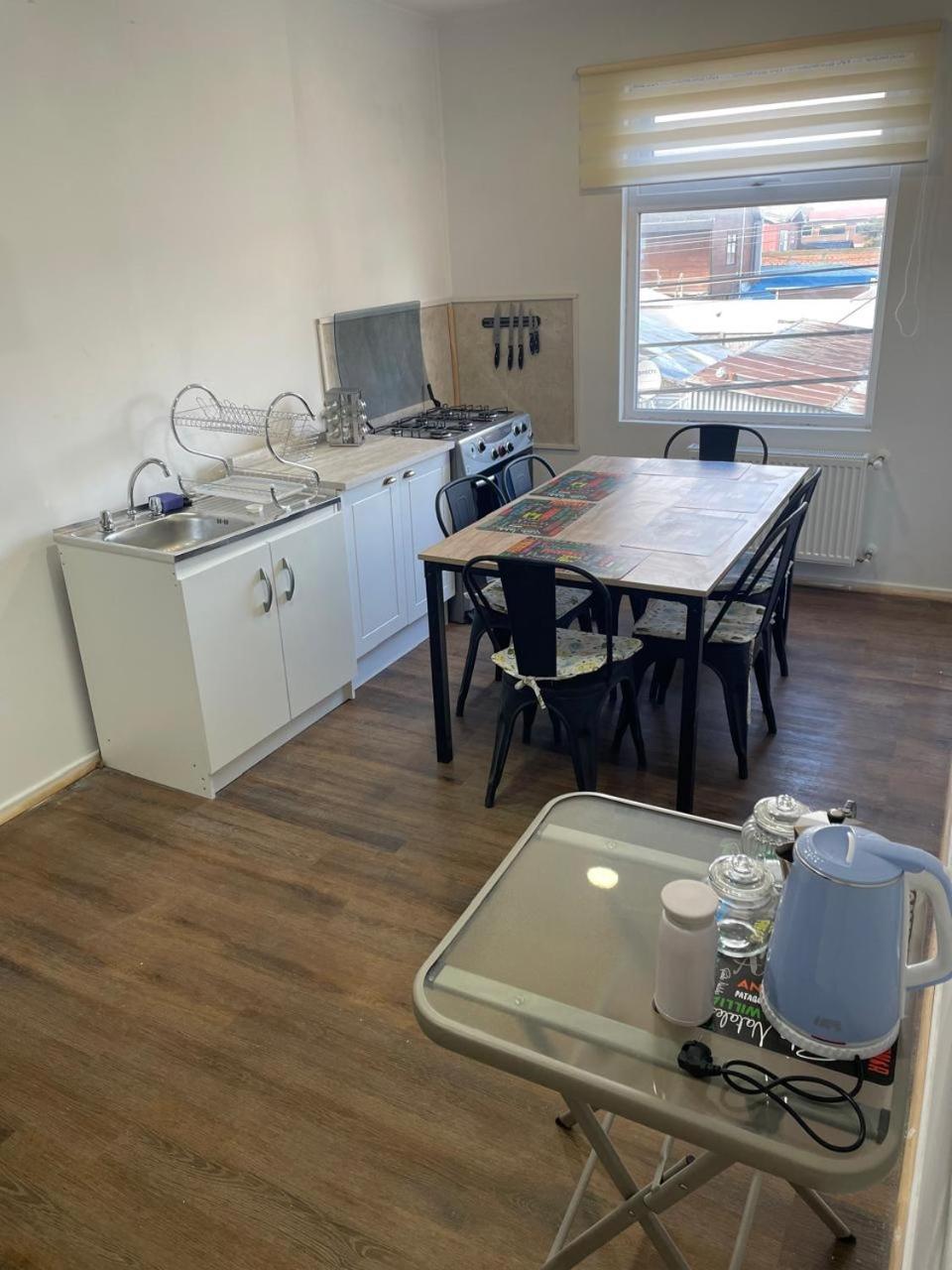 Cocina: Mesa de comedor. Utensilios de cocina. Hervidor eléctrico. Nevera