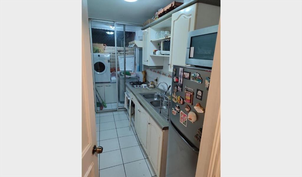 Cocina: Mesa de comedor. Utensilios de cocina. Hervidor eléctrico. Nevera