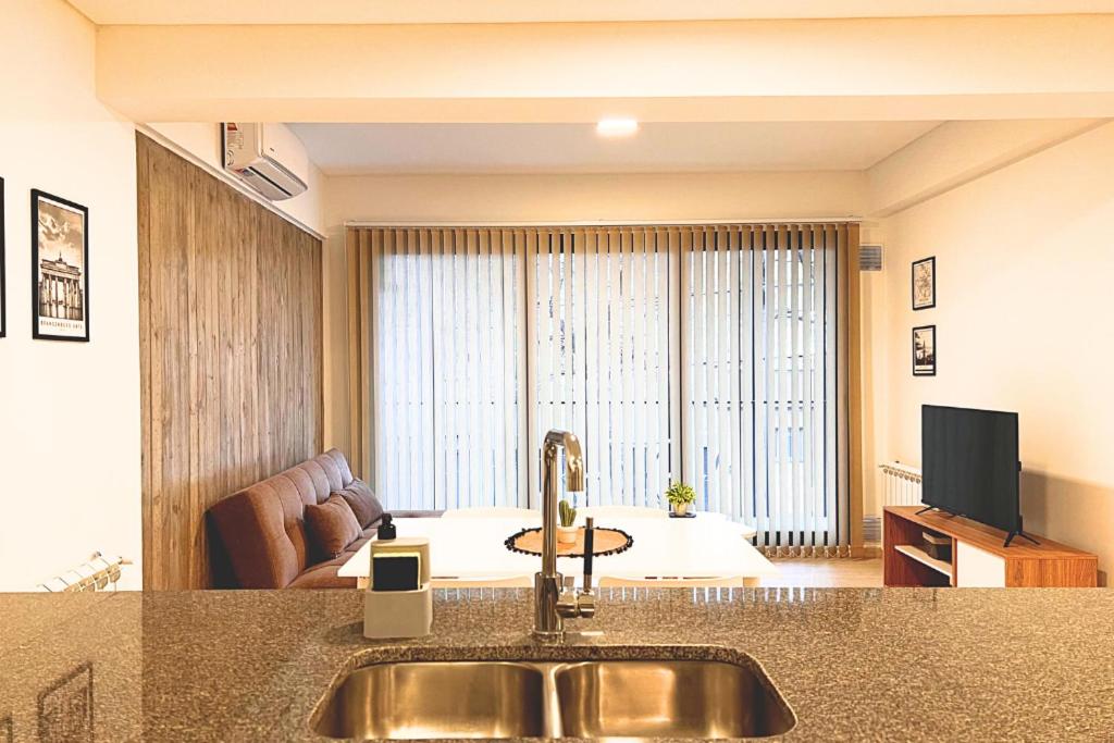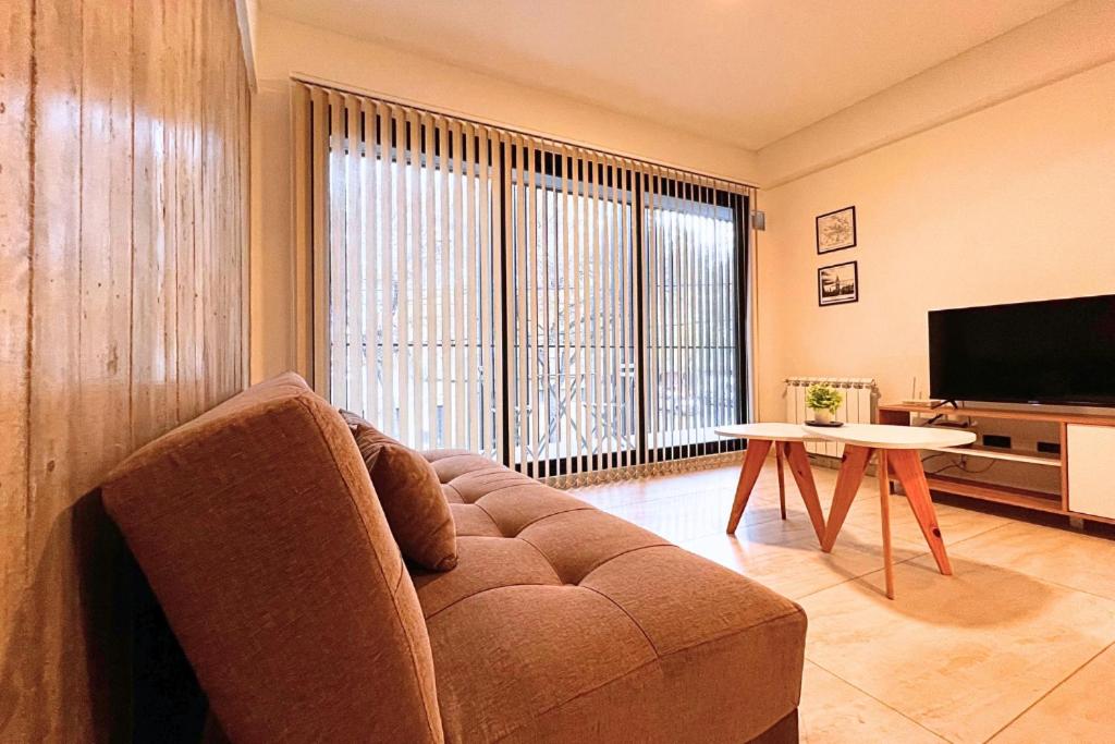 El departamento cuenta con aire acondicionado, 1 dormitorio independiente, 1 baño y sala de estar. Hay TV de pantalla plana.