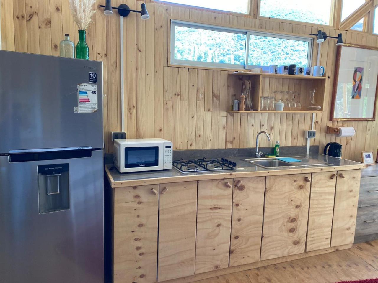 Cocina: Mesa de comedor. Utensilios de cocina. Cocina. Microondas. Nevera. Zona de cocina