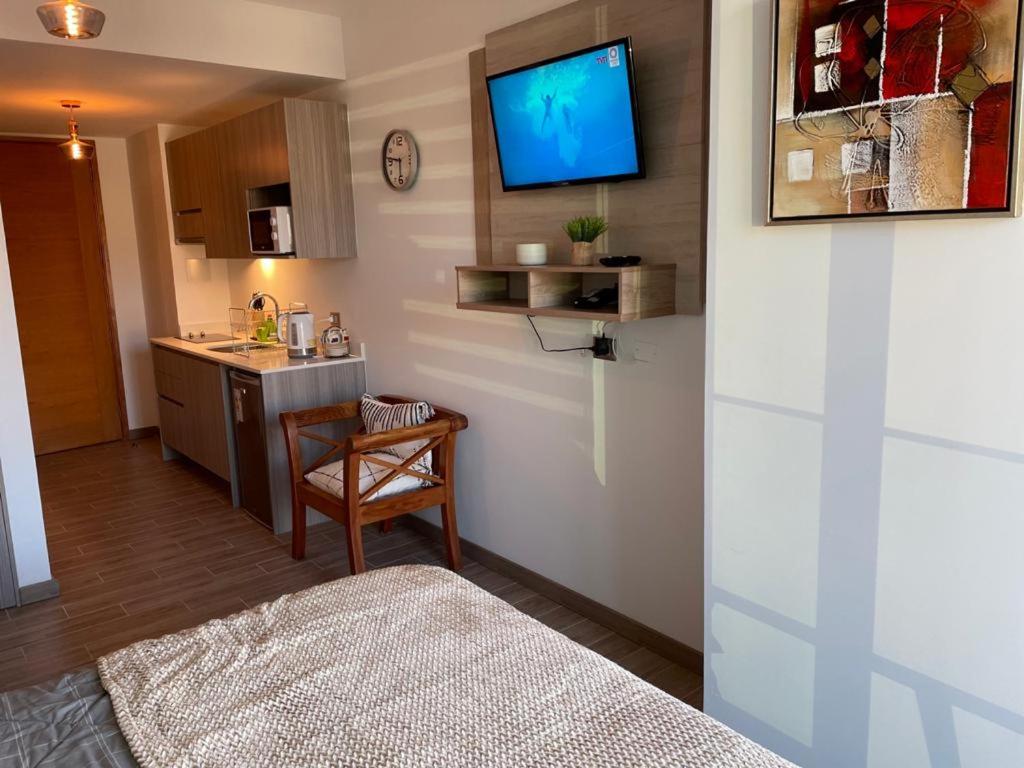 Inicia sesión y ahorraPodrías ahorrar un 10% o más en este alojamiento al iniciar sesiónInicia sesiónHazte una cuentaPrácticas del alojamientoEste alojamiento nos ha dicho que ha implementado algunas prácticas en todas o algunas de las siguientes categorías: residuos, agua, energía y gases de efecto invernadero, destino y comunidad, y naturaleza.Más infoVeronica Chile?La ubicación del alojamiento, y las habitaciones que eran muy cómodas, modernas.?Más infoSolange Chile?muy bueno, excelente atención y disposición, 100% recomendado, cerca de todo?Más infoCristian Chile?Las instalaciones, todo perfecto ,ubicación, calidad y precio?Más infoDario Chile?Instalaciones prácticamente nueva y la ubicación excelente.?Más infoMarjorie Chile?sus instalaciones nuevas son excelente y muy cómodas, tiene una buena ubicación 100% recomendado.?Más infoCarlos Chile?todo bien logrado, confortable, excelente vista de la cuidad, centrico, todo para una buena estancia.?Más infoJosé Argentina?La ubicación, las vistas desde el balcón, la seguridad de la propiedad, la proximidad con el Centro Histórico y los centros comerciales de la zona ...?Más infoCalidadBooking.com ha puntuado la calidad de este alojamiento con un 3 sobre 5, teniendo en cuenta factores como las instalaciones, el tamaño, la ubicación o los servicios prestados.EntradaDe las 15:00 a las 18:00Tienes que decirle al alojamiento con antelación a qué hora vas a llegar.SalidaDe las 08:00 a las 12:00Cancelación / prepagoLas condiciones de cancelación y de pago por adelantado pueden variar según el tipo de alojamiento. Introduce las fechas de tu estancia y consulta las condiciones de la opción que quieres reservar.Depósito por daños reembolsableSe pedirá un depósito por daños de US$100 a la llegada. Equivale a ? 89 aprox. Se efectuará en efectivo. Se te devolverá al hacer el check-out. El depósito se devolverá por completo en efectivo una vez revisado el alojamiento.Camas para niñosCondiciones para estancias con niñosSe pueden alojar niños de cualquier edad.Para ver la información correcta sobre precios y ocupación, añade a la búsqueda el número de niños con los que viajas y sus edades.Condiciones sobre cunas y camas supletoriasEn este alojamiento no hay cunas ni camas supletorias.No hay restricción por edadNo hay edad mínima para el check-inSolo efectivoEste alojamiento solo acepta pagos en efectivo.Fumadores / No fumadoresNo se puede fumar.FiestasNo se pueden celebrar fiestas/eventosMascotasNo se admiten.En este alojamiento no se pueden celebrar despedidas de soltero o soltera ni fiestas similares.Se pedirá un depósito por daños de US$100 a la llegada. Se efectuará en efectivo. Se te devolverá al hacer el check-out. El depósito se devolverá por completo en efectivo una vez revisado el alojamiento.