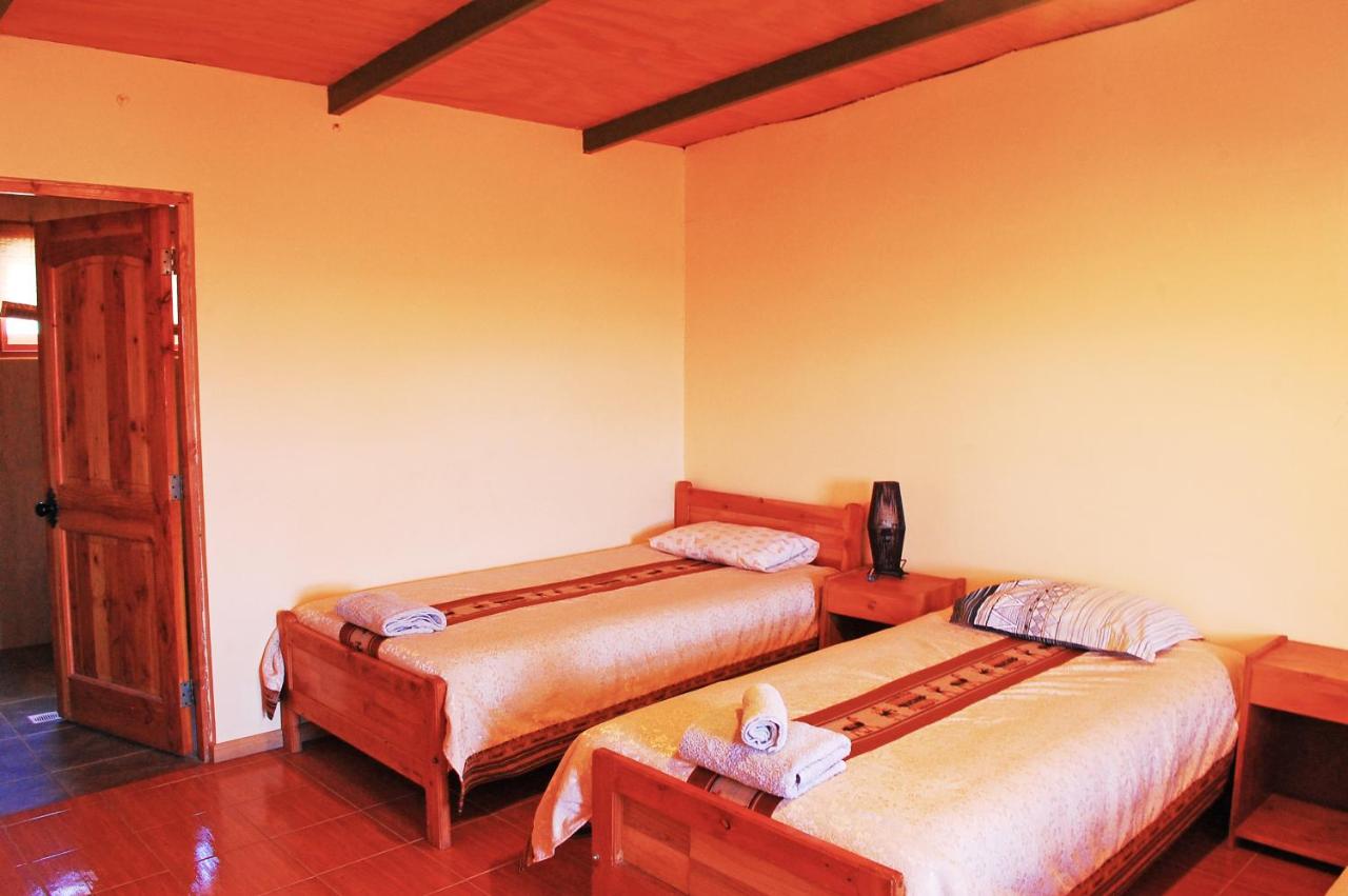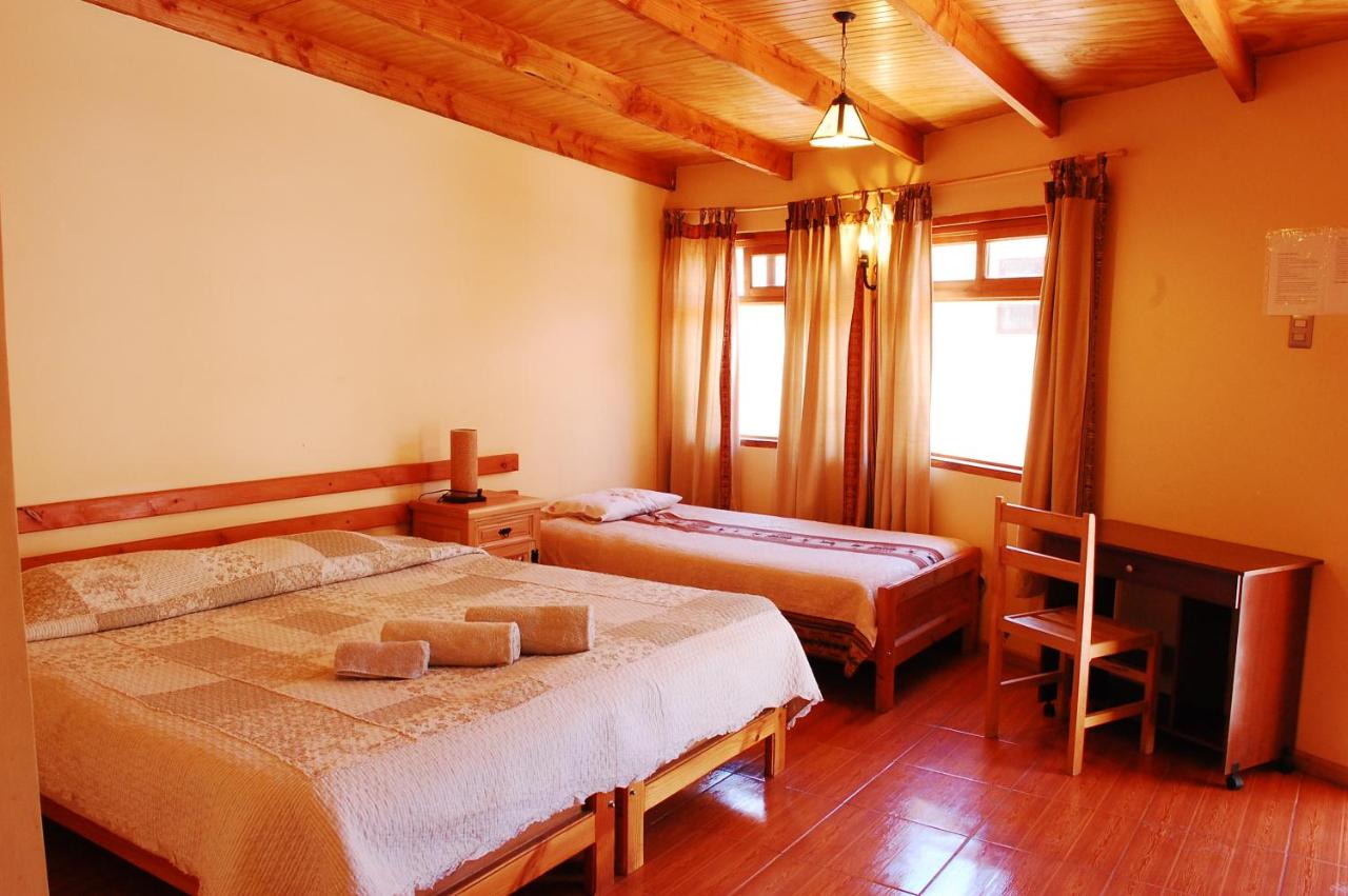 La...?Más infoRosa España?La ubicación es bastante buena, el hotel es básico, pero cómodo. El desayuno es normal, lo bueno es que si te vas de excursión muy temprano te lo preparan el día anterior para que puedas llevártelo. Limpio y el personal muy amable.?Más infoCristina Chile?Me gusto la ubicación, silencioso, se siente la paz.?Más infoEntradaDesde las 15:00SalidaHasta las 12:00Cancelación / prepagoLas condiciones de cancelación y de pago por adelantado pueden variar según el tipo de alojamiento. Introduce las fechas de tu estancia y consulta las condiciones de la opción que quieres reservar.Camas para niñosCondiciones para estancias con niñosSe pueden alojar niños de cualquier edad.Los niños a partir de 5 años pagan como adultos en este alojamiento.Para ver la información correcta sobre precios y ocupación, añade a la búsqueda el número de niños con los que viajas y sus edades.Condiciones sobre cunas y camas supletoriasMás de 0 añosCama supletoria a peticiónUS$25 por persona y nocheEl precio de las camas supletorias no está incluido en el precio total y se tiene que pagar por separado durante la estancia.El número de camas supletorias permitido depende de la opción que escojas. Consulta la opción que has escogido para saber más.No hay cunas disponibles en este alojamiento.Todas las camas supletorias están sujetas a disponibilidad.No hay restricción por edadNo hay edad mínima para el check-inMascotasNo se admiten.Métodos de pago aceptadosEfectivo Normativa fiscal del país:De acuerdo con las leyes fiscales del país, todos los ciudadanos chilenos (y los extranjeros residentes en el país) deben abonar un suplemento del 19% en concepto de IVA. Para quedar exentos del pago de este suplemento, los huéspedes deben abonar el importe de la estancia en USD y presentar una copia de la tarjeta de inmigración y el pasaporte. Los huéspedes que realicen el pago en la moneda local no estarán exentos de abonar este suplemento. En caso de no presentarse en el establecimiento, la factura se emitirá en la moneda local e incluirá el suplemento de IVA. El IVA no está incluido en las tarifas del hotel y se deberá abonar aparte.