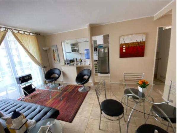 Andrea Chile?Todo limpio, y la anfitriona muy preocupada de que no faltara nada, volvería al mismo lugar?Más infoCatalina Chile?Un excelente departamento, contaba con todo lo necesario para nuestra estadía y la anfitriona era un 10. Sin dudas planeo volver.?Más infoConstanza Chile?Muy buena la atención, departamento amplio, todo limpio, cómodo y acogedor, además de tener muy buena ubicación? muy recomendable que pronto volveremos?Más infoViviana Chile?Ubicación y el condominio muy tranquilo, el depa tiene de todo, está muy bien equipado?Más infoCancelación / prepagoLas condiciones de cancelación y de pago por adelantado pueden variar según el tipo de alojamiento. Introduce las fechas de tu estancia y consulta las condiciones de la opción que quieres reservar.Camas para niñosCondiciones para estancias con niñosSe pueden alojar niños de cualquier edad.Para ver la información correcta sobre precios y ocupación, añade a la búsqueda el número de niños con los que viajas y sus edades.Condiciones sobre cunas y camas supletoriasEn este alojamiento no hay cunas ni camas supletorias.No hay restricción por edadNo hay edad mínima para el check-inSolo efectivoEste alojamiento solo acepta pagos en efectivo.Fumadores / No fumadoresNo se puede fumar.FiestasNo se pueden celebrar fiestas/eventosMascotas¡Gratis!Se admiten. Gratis.En este alojamiento no se pueden celebrar despedidas de soltero o soltera ni fiestas similares.