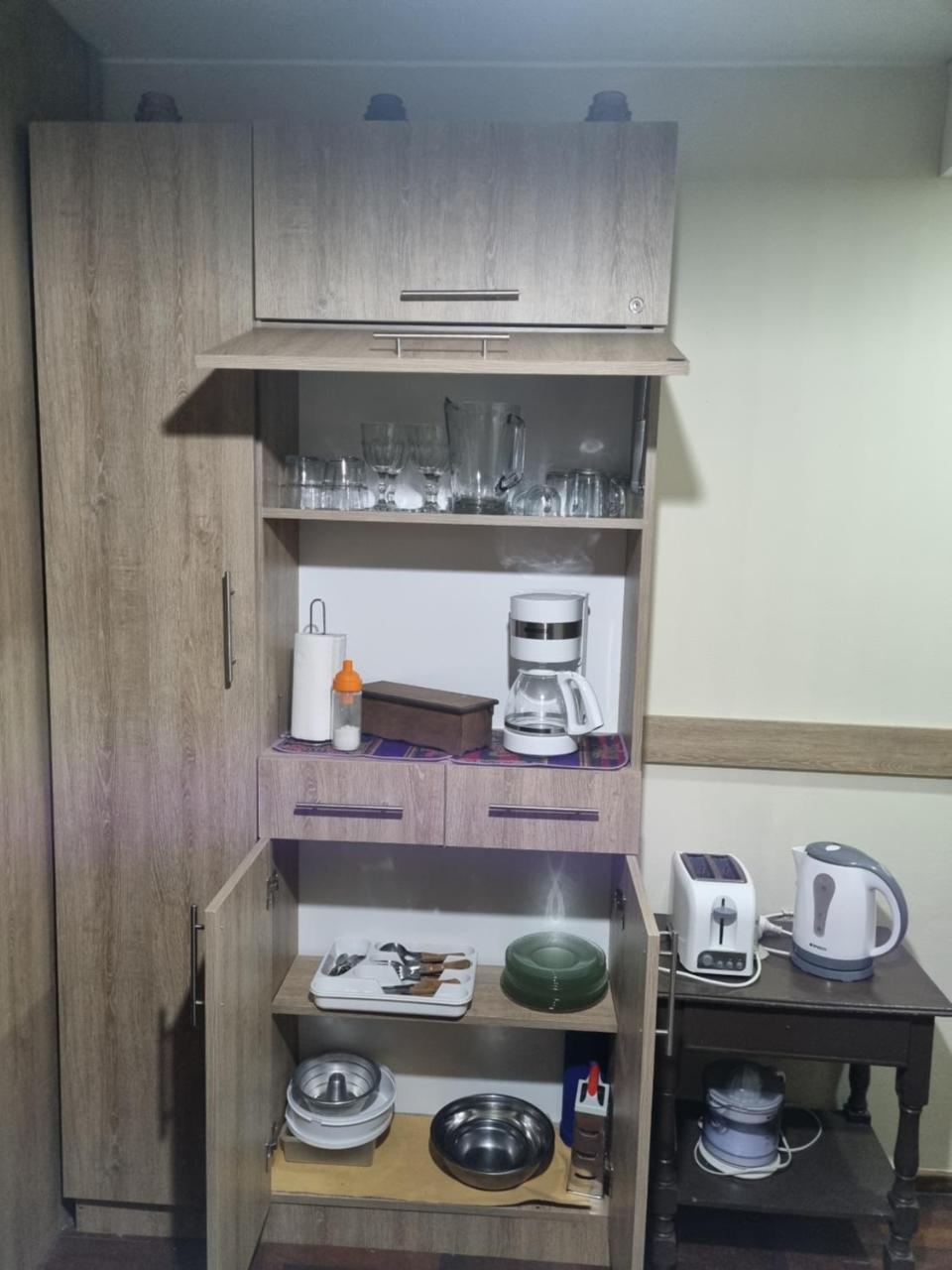 Cocina: Mesa de comedor. Productos de limpieza. Tostadora. Hornalla. Utensilios de cocina. Pava eléctrica. Cocina. Lavarropas. Microondas. Heladera. Kitchenette