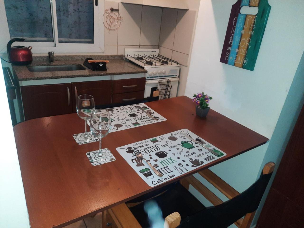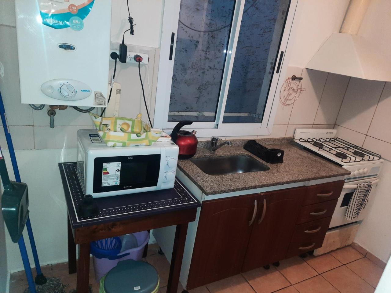 Cocina: Mesa de comedor. Productos de limpieza. Hornalla. Horno. Utensilios de cocina. Pava eléctrica. Cocina. Microondas. Heladera