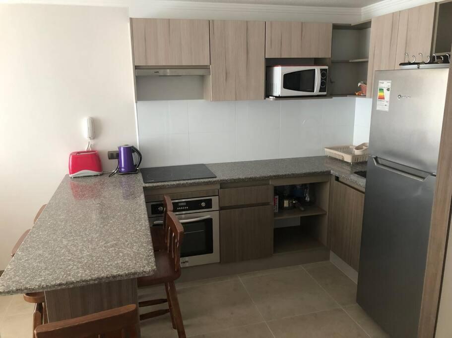 Domingo Chile?La tranquilidad y paz convinado con la vista al mar todo super bien?Más infoMilinhzen Chile?La ubicación excelente, la vista maravillosa y la dueña un 7, siempre muy preocupada y atenta, 1000 % recomendado, nos encantó!!!?Más infoAhumada Chile?excelente ubicación, todo muy lindo en el departamento y la asistencia de la dueña un 7,volvería de nuevo?Más infoUrsula Chile?Buena ubicación, el departamento es muy bonito y tiene todas las comodidades necesarias para una buena estadía.?Más infoEduardo Chile?Departamento acogedor con una excelente ubicación.?Más infoCalidadBooking.com ha puntuado la calidad de este alojamiento con un 4 sobre 5, teniendo en cuenta factores como las instalaciones, el tamaño, la ubicación o los servicios prestados.Prácticas del alojamientoEste alojamiento nos ha dicho que ha implementado algunas prácticas en todas o algunas de las siguientes categorías: residuos, agua, energía y gases de efecto invernadero, destino y comunidad, y naturaleza.Más infoEntradaDe las 17:00 a las 22:00Tienes que decirle al alojamiento con antelación a qué hora vas a llegar.SalidaDe las 10:00 a las 11:00Cancelación / prepagoLas condiciones de cancelación y de pago por adelantado pueden variar según el tipo de alojamiento. Introduce las fechas de tu estancia y consulta las condiciones de la opción que quieres reservar.Horario límiteLa entrada del alojamiento se cierra de 22:00 a 10:00Depósito por daños reembolsableSe pedirá un depósito por daños de US$100 a la llegada. Equivale a ? 89 aprox. Se efectuará en efectivo. Se te devolverá al hacer el check-out. El depósito se devolverá por completo en efectivo una vez revisado el alojamiento.Camas para niñosCondiciones para estancias con niñosSe pueden alojar niños de cualquier edad.Para ver la información correcta sobre precios y ocupación, añade a la búsqueda el número de niños con los que viajas y sus edades.Condiciones sobre cunas y camas supletoriasEn este alojamiento no hay cunas ni camas supletorias.Restricción por edadEdad mínima para el check-in: 21Solo efectivoEste alojamiento solo acepta pagos en efectivo.Fumadores / No fumadoresNo se puede fumar.FiestasNo se pueden celebrar fiestas/eventosHorario sin ruidoLos clientes deben minimizar el ruido de 23:00 a 08:00MascotasNo se admiten.Informa a Ubicado a pasos de la playa y de casino Enjoy con antelación de tu hora prevista de llegada. Para ello, puedes utilizar el apartado de peticiones especiales al hacer la reserva o ponerte en contacto directamente con el alojamiento. Los datos de contacto aparecen en la confirmación de la reserva.En este alojamiento no se pueden celebrar despedidas de soltero o soltera ni fiestas similares.No se puede hacer ruido de 23:00:00 a 08:00:00.Se pedirá un depósito por daños de US$100 a la llegada. Se efectuará en efectivo. Se te devolverá al hacer el check-out. El depósito se devolverá por completo en efectivo una vez revisado el alojamiento.